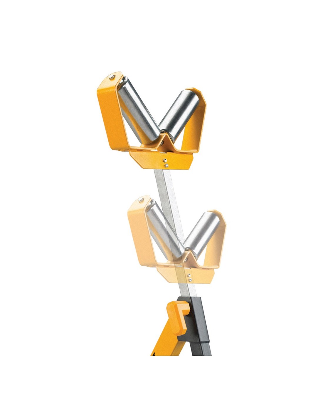 Base con rodillos en v, capacidad de carga 60 kg, mantiene los tubos y tuberías centrados al cortarlos, ajuste rápido de altura entre 80 y 115 cm, los rodillos de acero galvanizado proporcionan soporte y un deslizamiento suave, bastidor de tubo cuadrado de 5 cm, extremadamente fuerte, pies ajustables a medida. plegable para almacenamiento