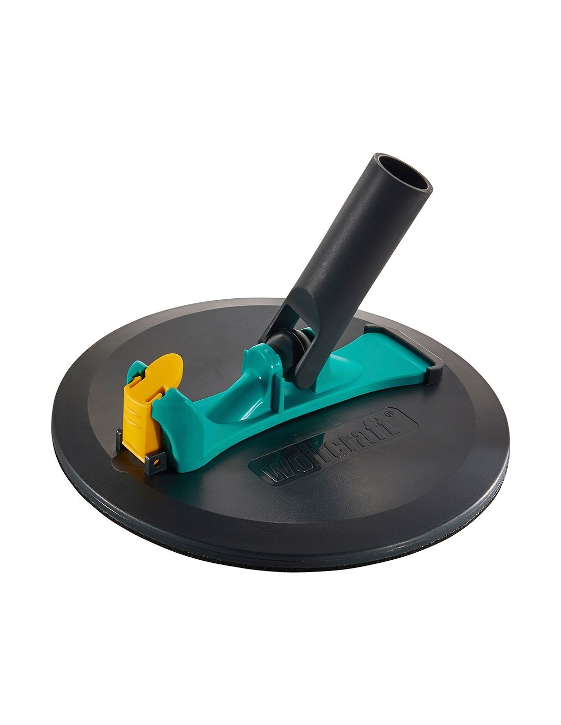 Lijadora circular manual con cierre autoadherente que permite colocar cualquier tejido de rejilla con ø225 mm, mango telescópico que permite acceder a techos y superficies inclinadas, fabricado en plástico y extensible de 113 a 200 cm, incluye lija de grano 120