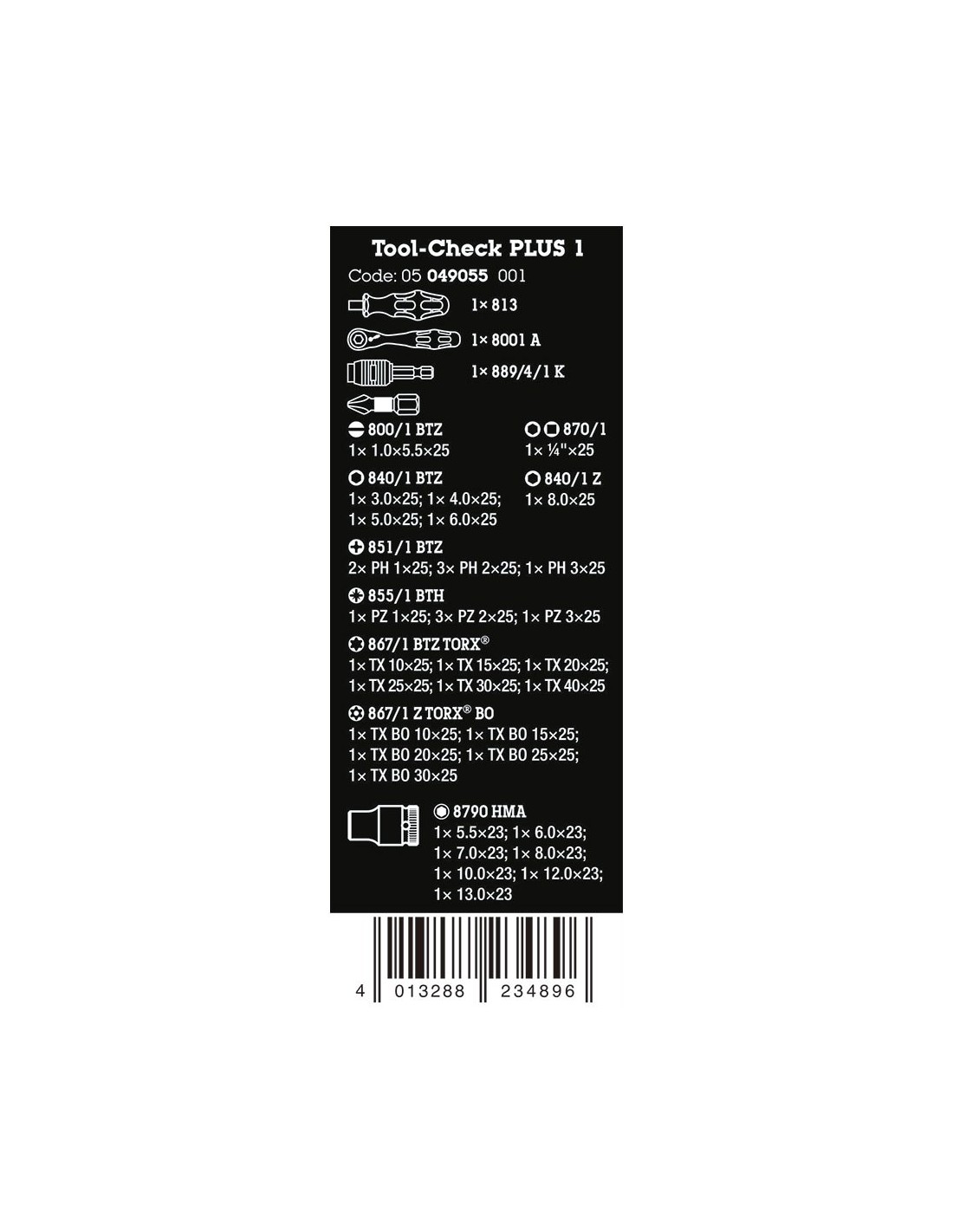 Estuche check plus 1, 39 piezas. juego supercompacto para uso manual y mecánico con carraca zyklop mini de ¼ pulg, mango kraftform y porta-puntas. incluye elementos de bloqueo, 28 puntas de 25 mm, sistema take it easy y 7 vasos de 23 mm. contenido: 1x¼x87.0, 1x¼x78, 1x¼x50, 1x¼x25. puntas de 25 mm: 2xph1, 3xph2, 1xph3, 1xpz1, 3xpz2, 1xpz3, 1xtx10, 1xtx15, 1xtx20, 1xtx25, 1xtx30, 1xtx40, 1xtxbo10, 1xtxbo15, 1xtxbo20, 1xtxbo25, 1xtxbo30, 1x1.0x5.5, 1x3.0, 1x4.0, 1x5.0, 1x6.0, 1x8.0. vasos 23 mm: 1x5.5, 1x6.0, 1x7.0, 1x8.0, 1x10.0, 1x12.0, 1x13.0