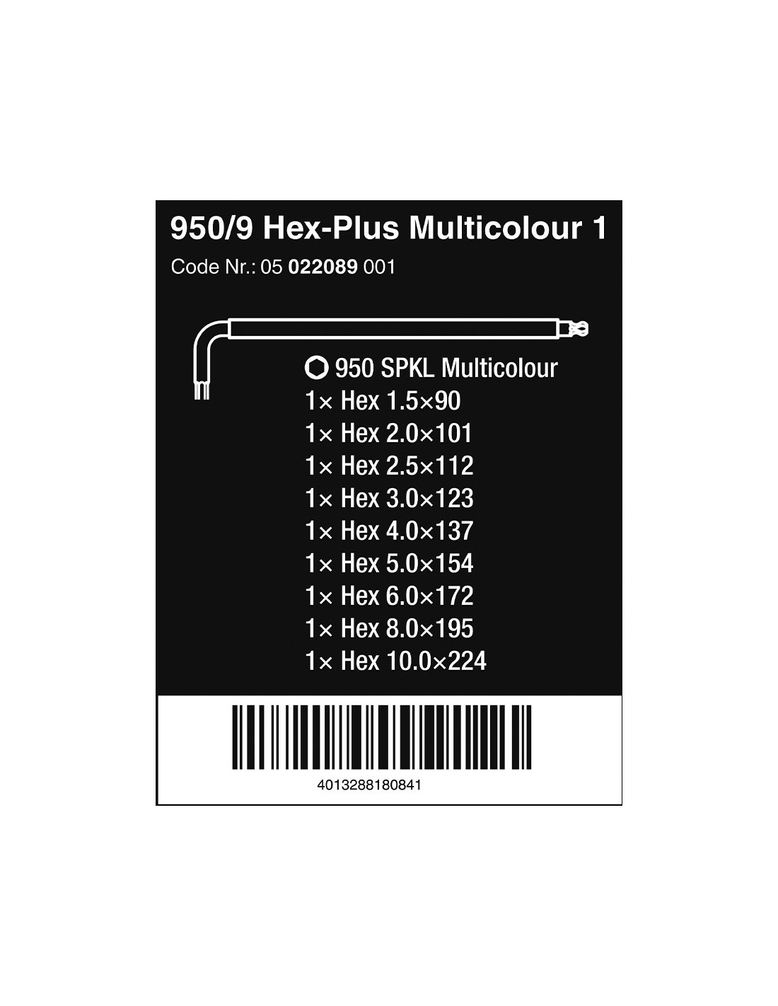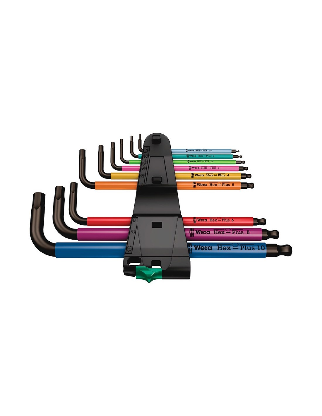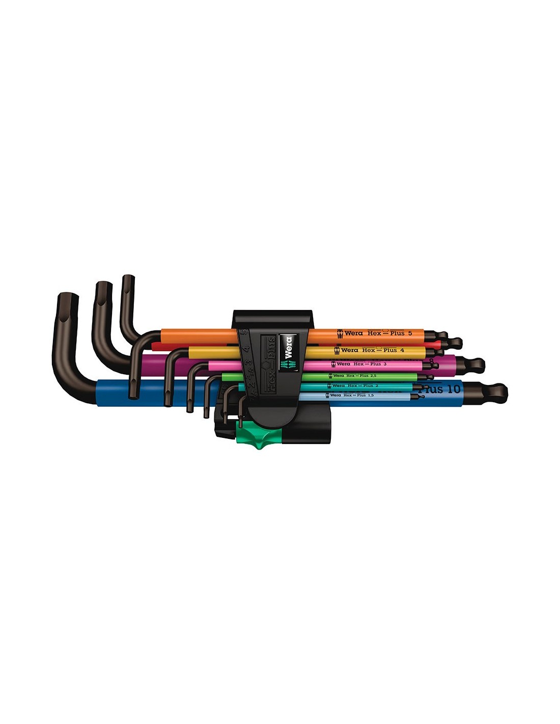 Llaves allen métricas multicolor, 9 piezas. juego de llaves acodadas con sistema hex-plus que prolonga la vida útil del tornillo. llaves encamisadas en goma que proporcionan un manejo ergonómico incluso con temperaturas bajas, con marcas a color y sellos según tamaño resistentes a la abrasión: 1 x 1.5x90, 1 x 2.0x101, 1 x 2.5x112, 1 x 3.0x123, 1 x 4.0x137, 1 x 5.0x154, 1 x 6.0x172, 1 x 8.0x195, 1 x 10.0x224 mm