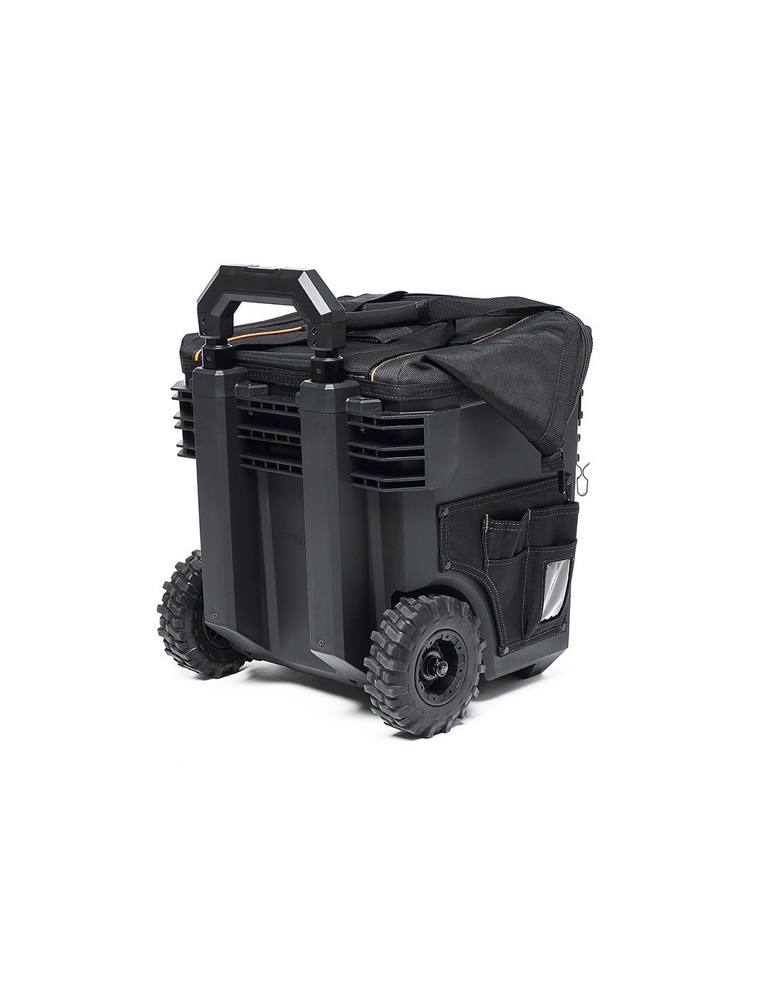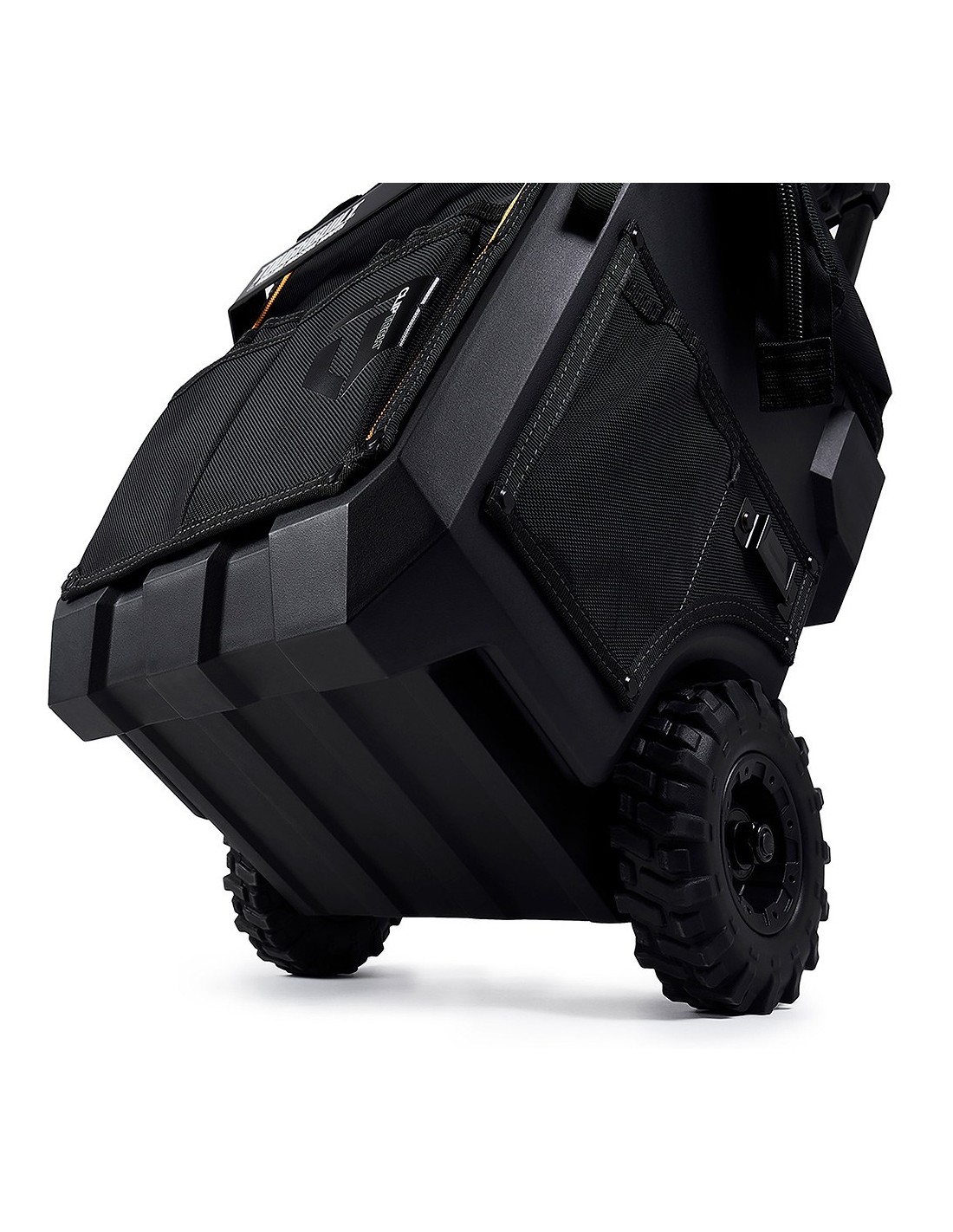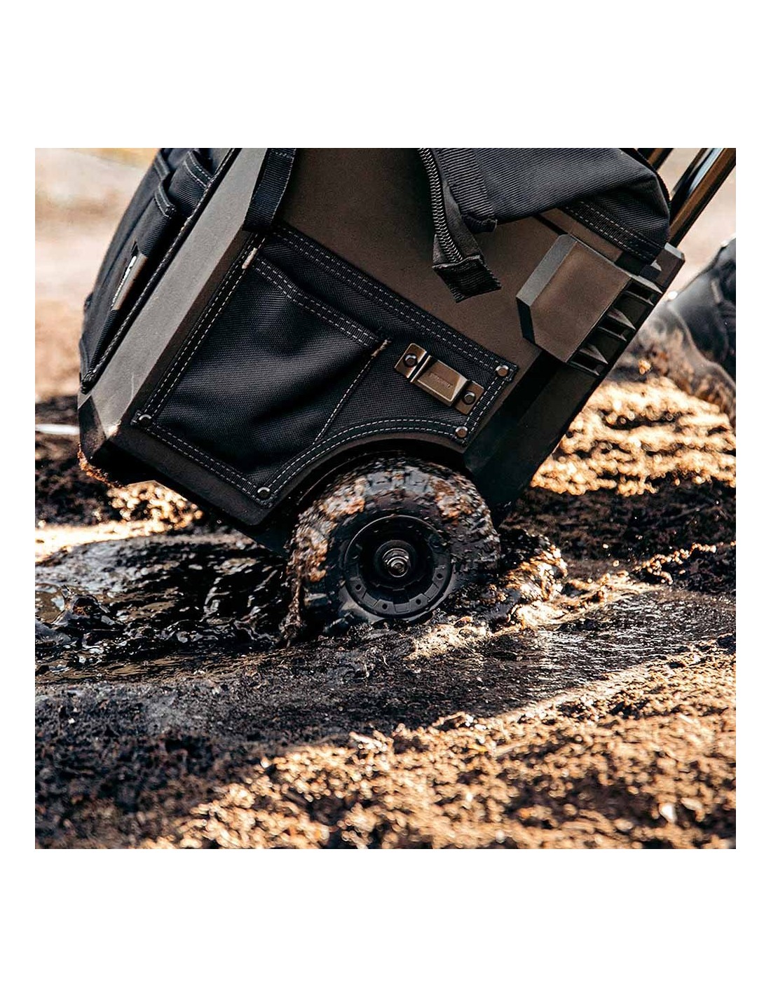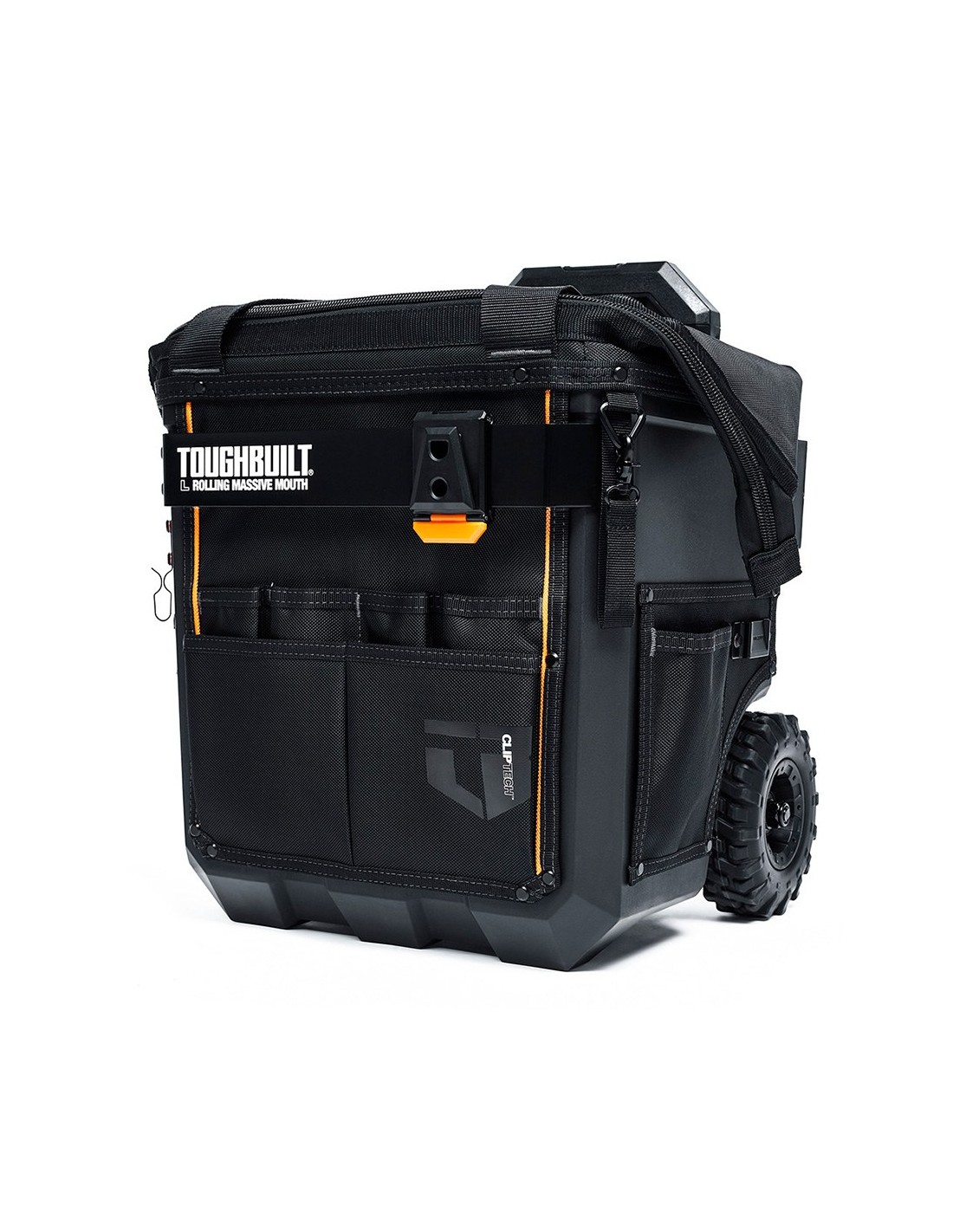 Bolsa de herramientas modelo massive mouth l, con sistema cliptech, base y cuerpo robusto, duro e impermeable, sometido a pruebas de impacto. bolsillo principal con cremallera superior de gran apertura de 38 cm para un acceso fácil y más visibilidad en su interior que otra bolsa del mercado. con 11 bolsillos en la parte exterior y 9 en la parte interior, paneles de los bolsillos remachados, barra de acero de alta resistencia con un elemento cliptech, ruedas robustas todo terreno, asa extra ancha de gran resistencia, extensible hasta 105 cm. dimensiones 36,8 x 35,5 x 49,5 cm