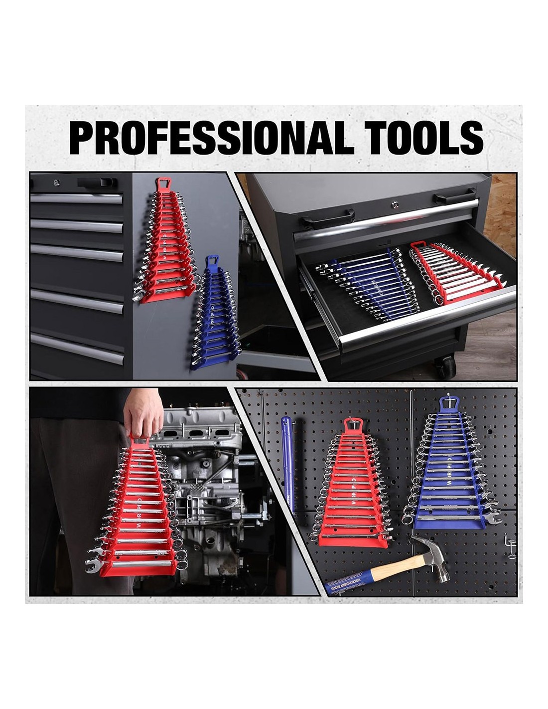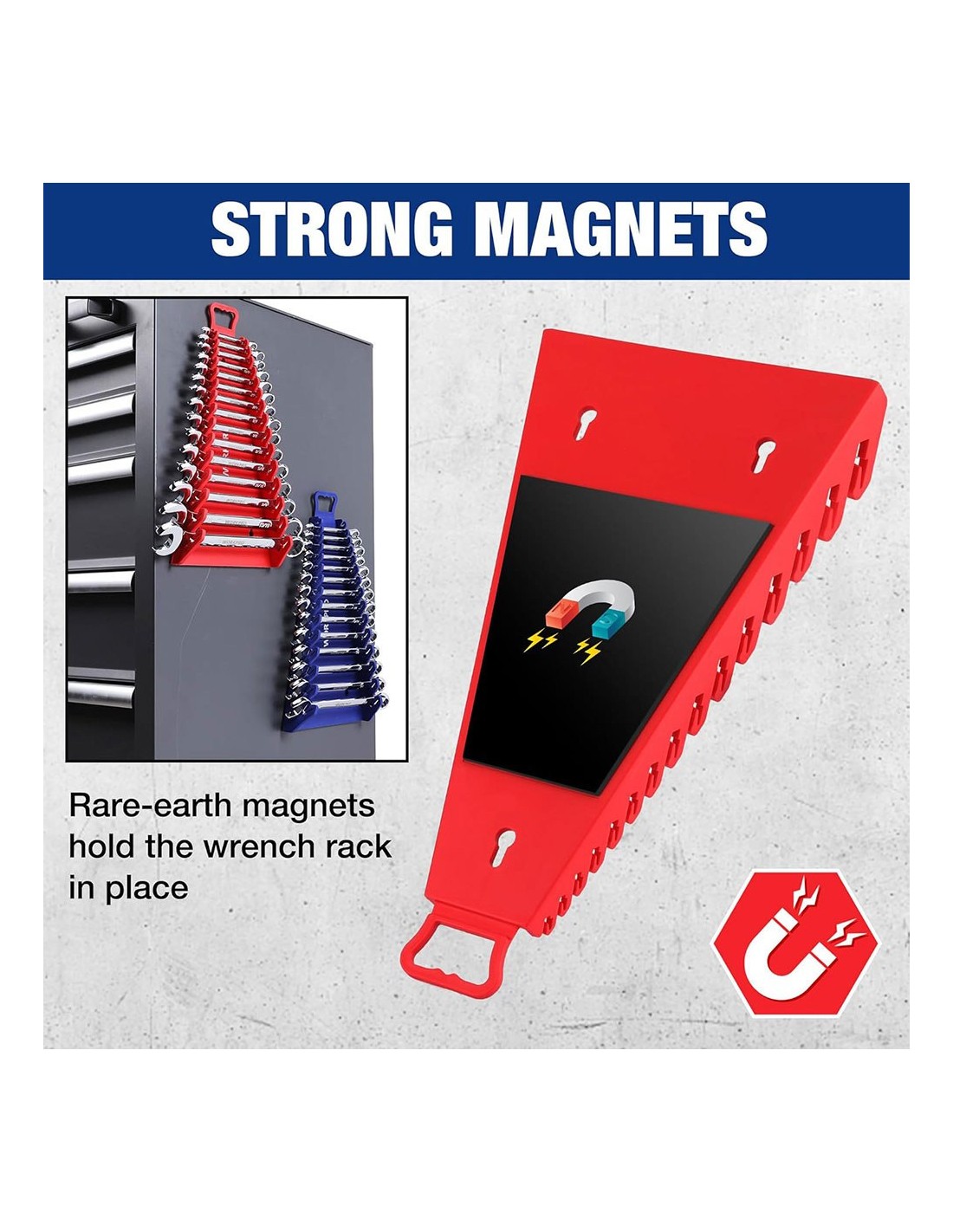 Soporte magnético para llaves, triangular, 15 posiciones de 6 - 27 mm, para almacenamiento de llaves combinadas, llaves fijas de doble boca o llaves de estrella dobles, magnetismo potente, cambios de llave rápidos y fáciles, ahorrando tiempo y mejorando la eficiencia en el trabajo, materiales de alta calidad, tamaño compacto y ligero, evita que las llaves se caigan, reduciendo el riesgo de perder llaves y posibles accidentes, incluye colgador. llaves no incluidas, 345 x 188 x 48 mm
