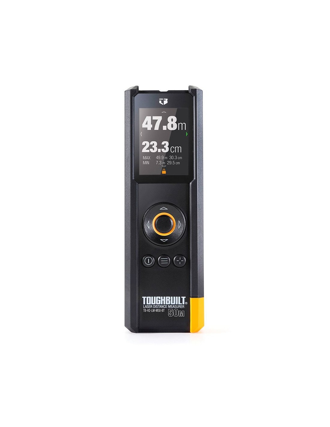 Medidor de distancia láser, con alcance de 50 m. pantalla a color de gran contraste y con visibilidad a la luz del día. visor digital a color 4x para hacer un seguimiento del láser a distancias lejanas. interfaz de usuario intuitiva y almacenamiento de datos sencillo con aplicación móvil. 13 formas de medición, grado de protección ip54, funciona con pilas 2 x aaa, incluidas. incluye bolsa de almacenaje y cinta para colgar. dimensiones 48 x 30 x 152 mm