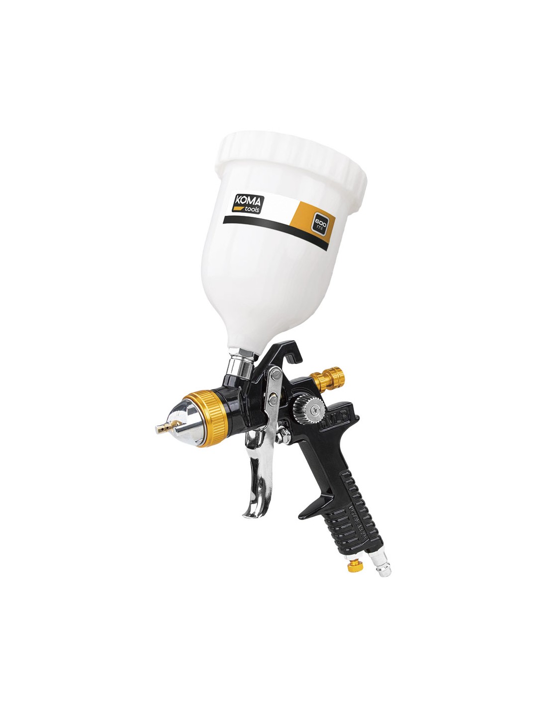 Pistola de pintar por gravedad, hvlp (alto volumen de aire y baja presión). incluye: depósito capacidad de 600 ml, llave polivalente, cepillo de limpieza. boquilla ø1,4 mm, admite entre 1,2 y 2,5 mm. consumo de aire 8,5 - 17 m³/h, caudal 100 - 220 ml/min, toma de aire 1/4. presión de trabajo 43 psi. peso del producto 580 gr, medidas: 10,5 x 16,8 x 33,5 cm"
