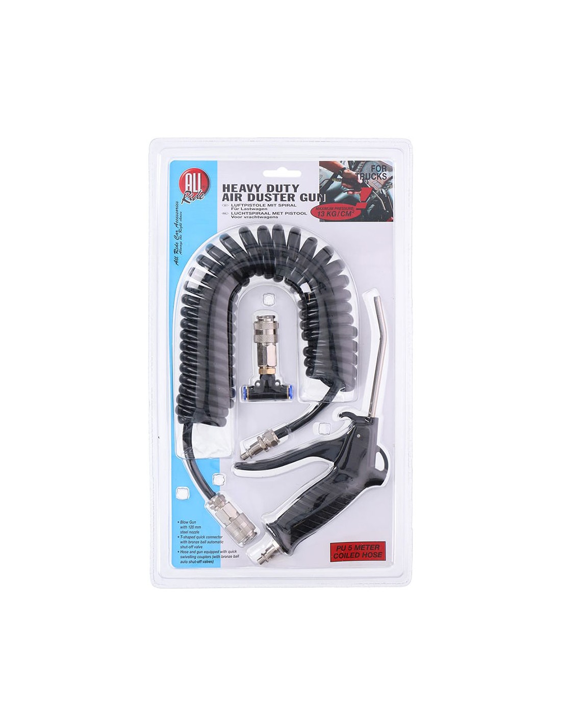 Kit de pistola de aire comprimido con boquilla de acero de 120 mm, conector rápido en forma de t con válvula de cierre automática de bola de bronce, manguera enrollada de 5 m, presión máxima - 13 kg / cm²