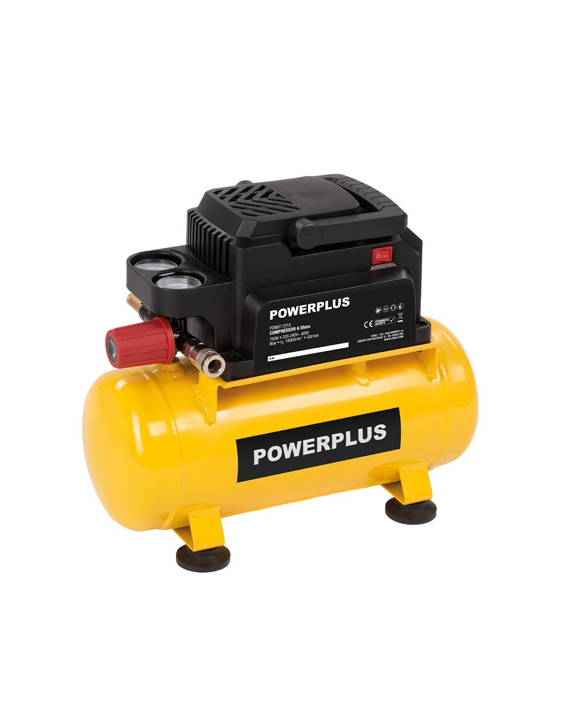 Compresor sin aceite 750 w, 6 l de capacidad. para inflar neumáticos de bicicleta y automóviles, colchones de aire y globos. también se puede usar en combinación con herramientas neumáticas. tiene un flujo de aire de hasta 50 l/min, nivel de potencia sonora hasta 96 db, que asegura una presión máxima de 8 bar. con regulador de presión. no requiere mantenimiento especial. su válvula de seguridad se abre automáticamente cuando la presión de aire supera el límite de seguridad, evitando daños en el aparato y garantizando seguridad. manómetro integrado. es fácil de transportar