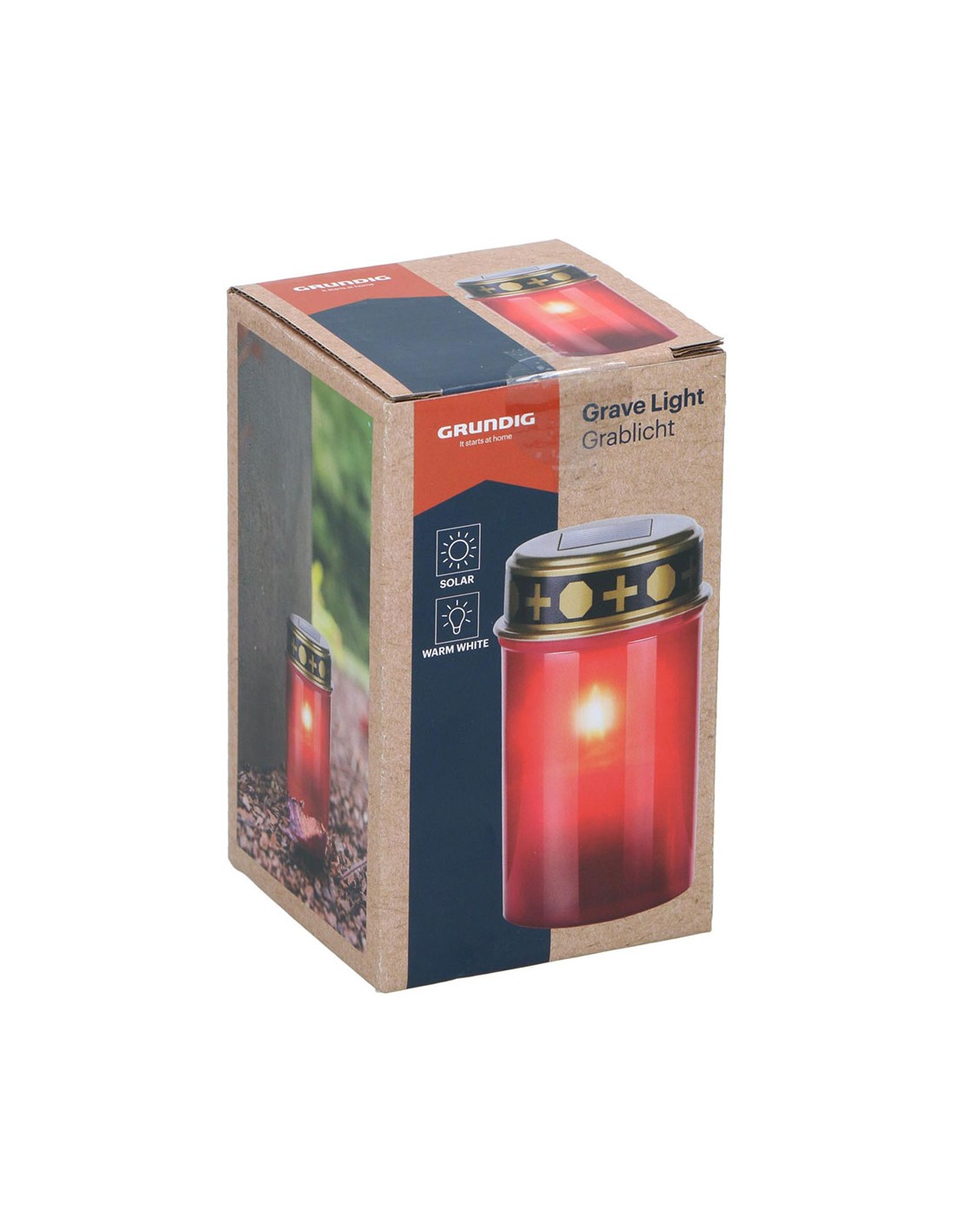 Vela para difuntos (cementerio) con luz led solar, color rojo, luz cálida, medidas: ø6,5 x 12 cm