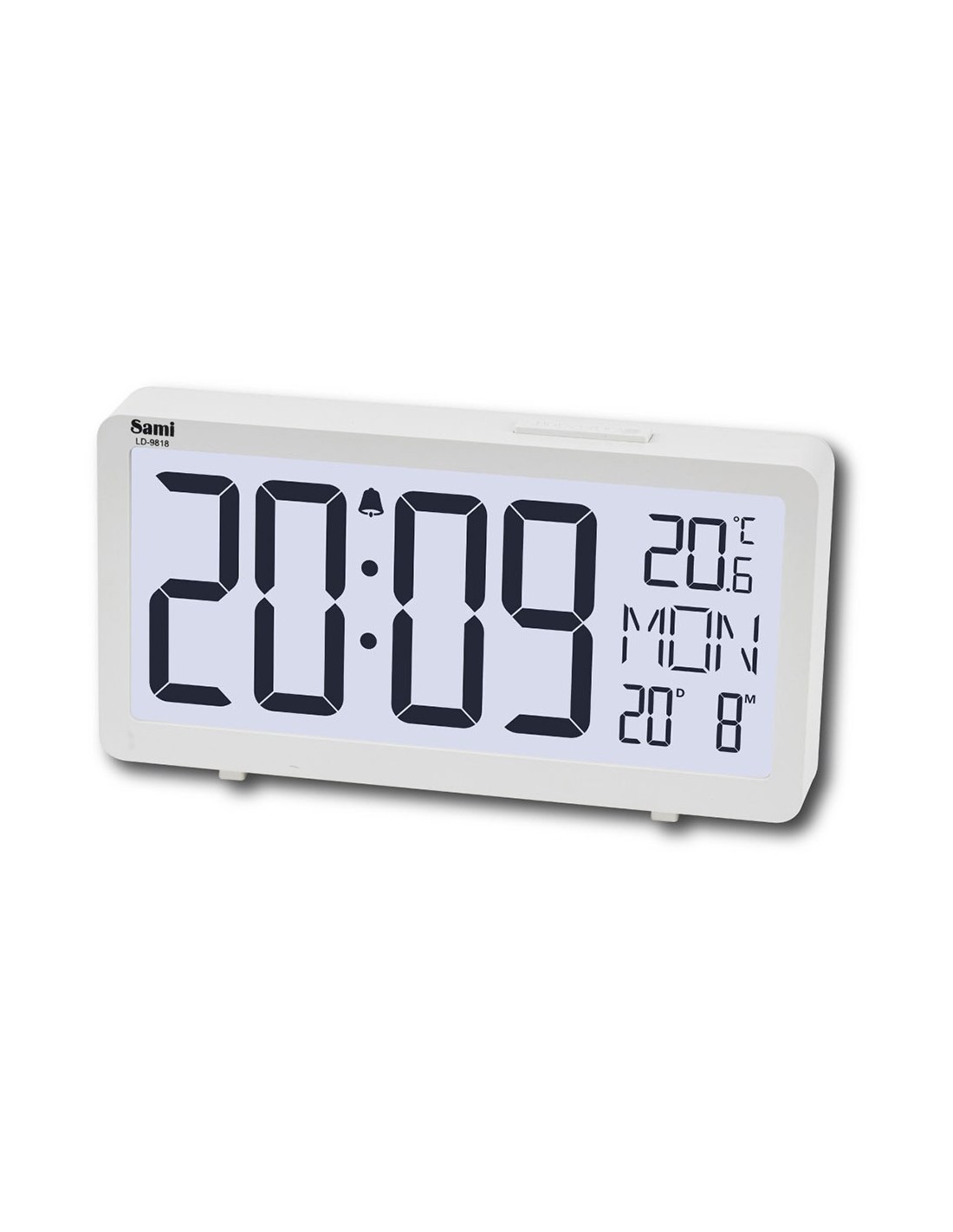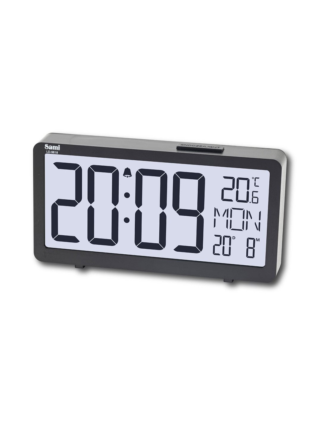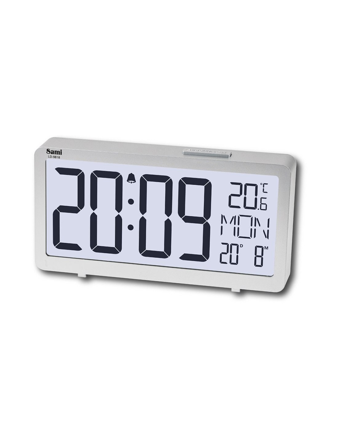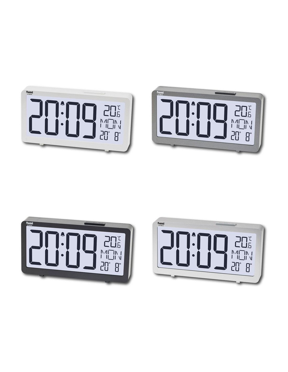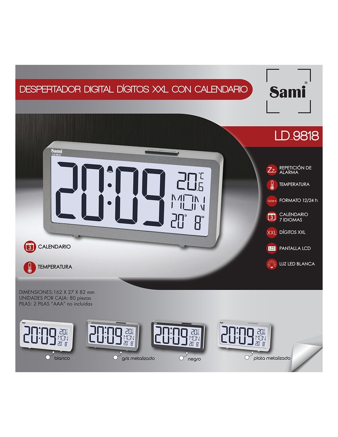 Despertador digital con pantalla lcd, repetición de alarma e indicador de temperatura, formato de hora 12/24 h, indicador de fecha y configuración en 7 idiomas, visualización de números xxl, alimentación 2 x aaa, no incluidas, colores surtidos