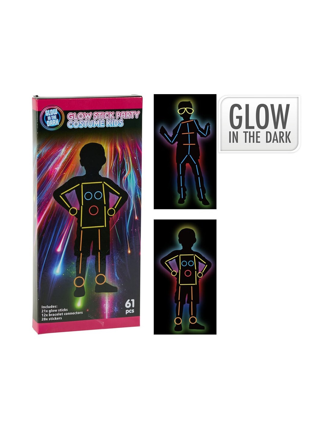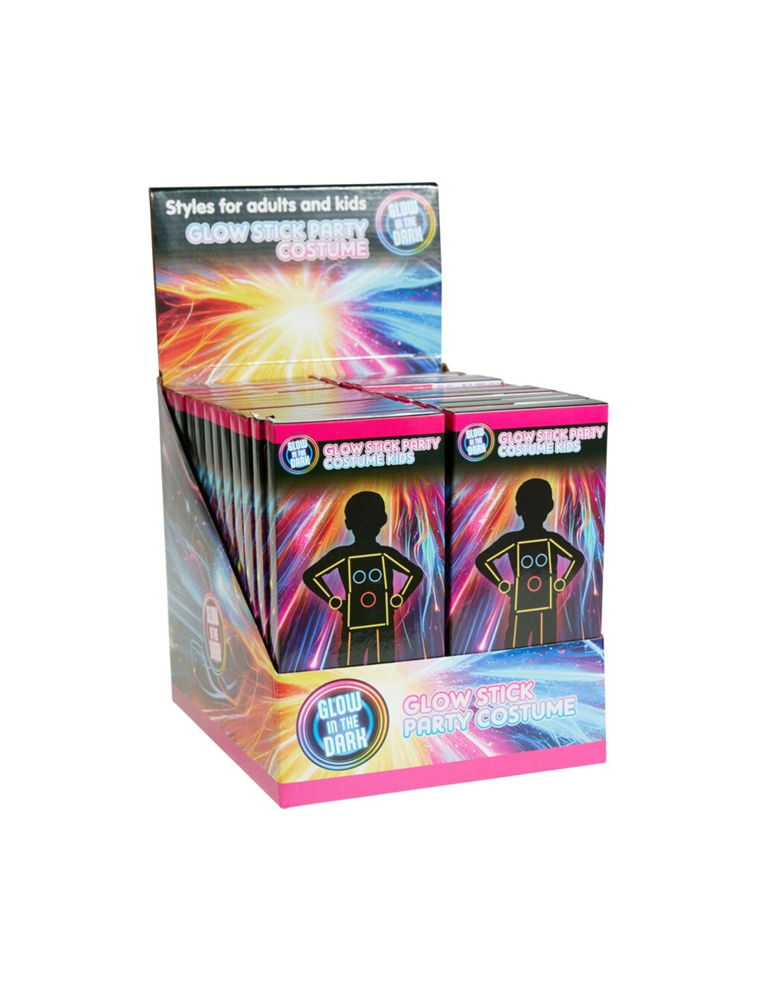 Set para fiesta que brilla en la oscuridad, disfraz de fiesta de neón, incluye: 22 palitos luminosos, 3 conectores para gafas, 5 conectores para pulseras, 28 adhesivos, caja con 58 piezas, presentado en expositor de 24 uds