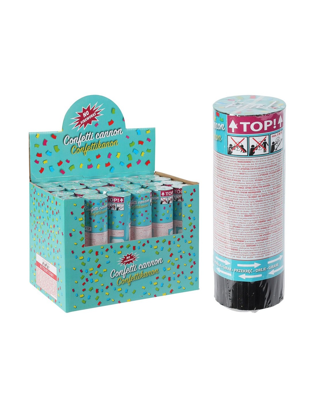 Cañon de confeti. presentado en expositor de 24 uds