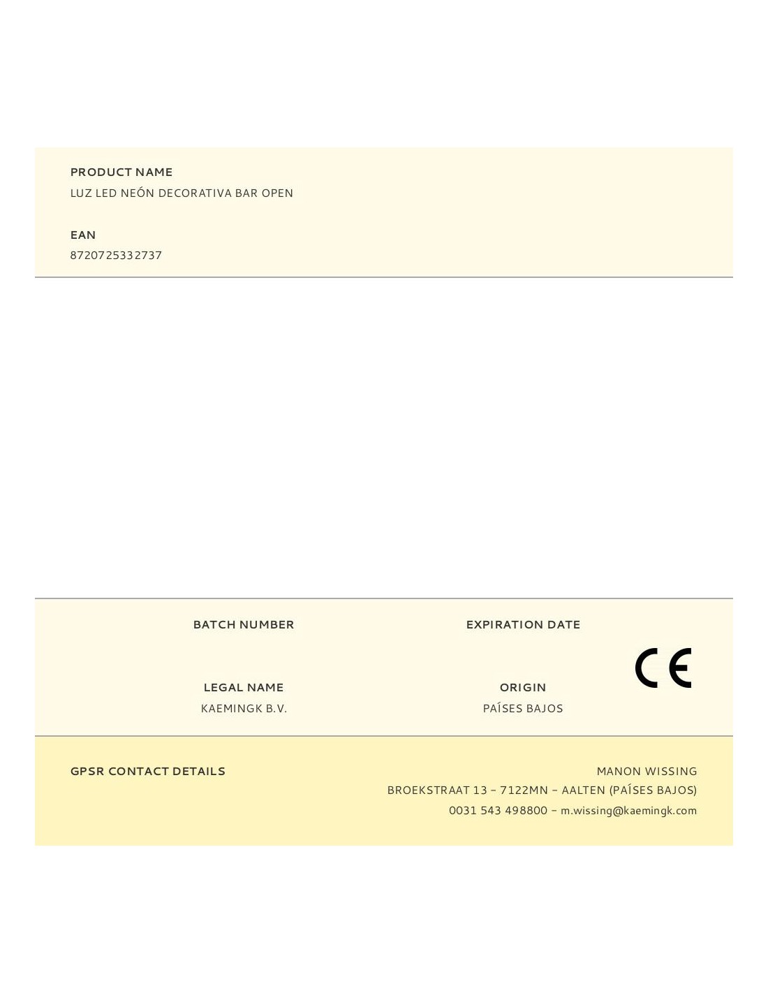 Luz led neón decorativa bar open, 220 leds, función cambia de color, con mando control remoto. material plástico. para interior. cable de alimentación usb blanco 180 cm, dimensiones 30 cm