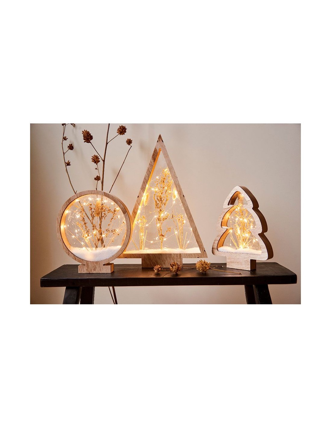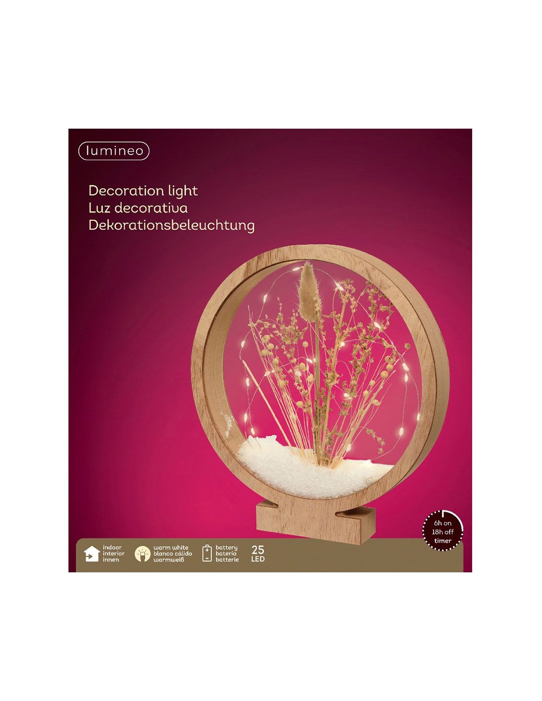 Círculo de madera con microleds 4,30x25x27,5cm 25 leds. ip20 interior, luz cálida, con elementos naturales, 2xaaa,