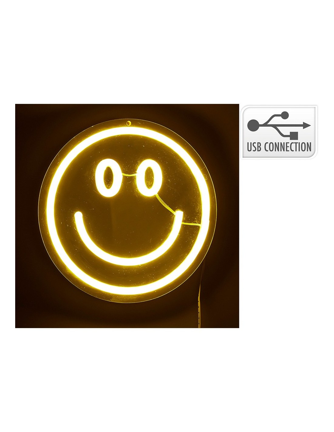 Luz led neón decorativa forma de carita sonriente, lámina de pvc espumado, espejo ps, tira fv, cobre, led de color. usb con interruptor de encendido/apagado, cable blanco de 2 m - dimensiones: 20 x 20 cm