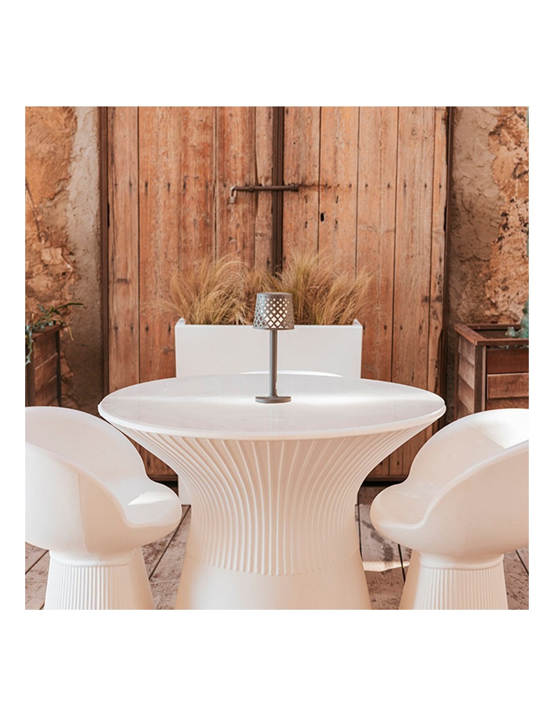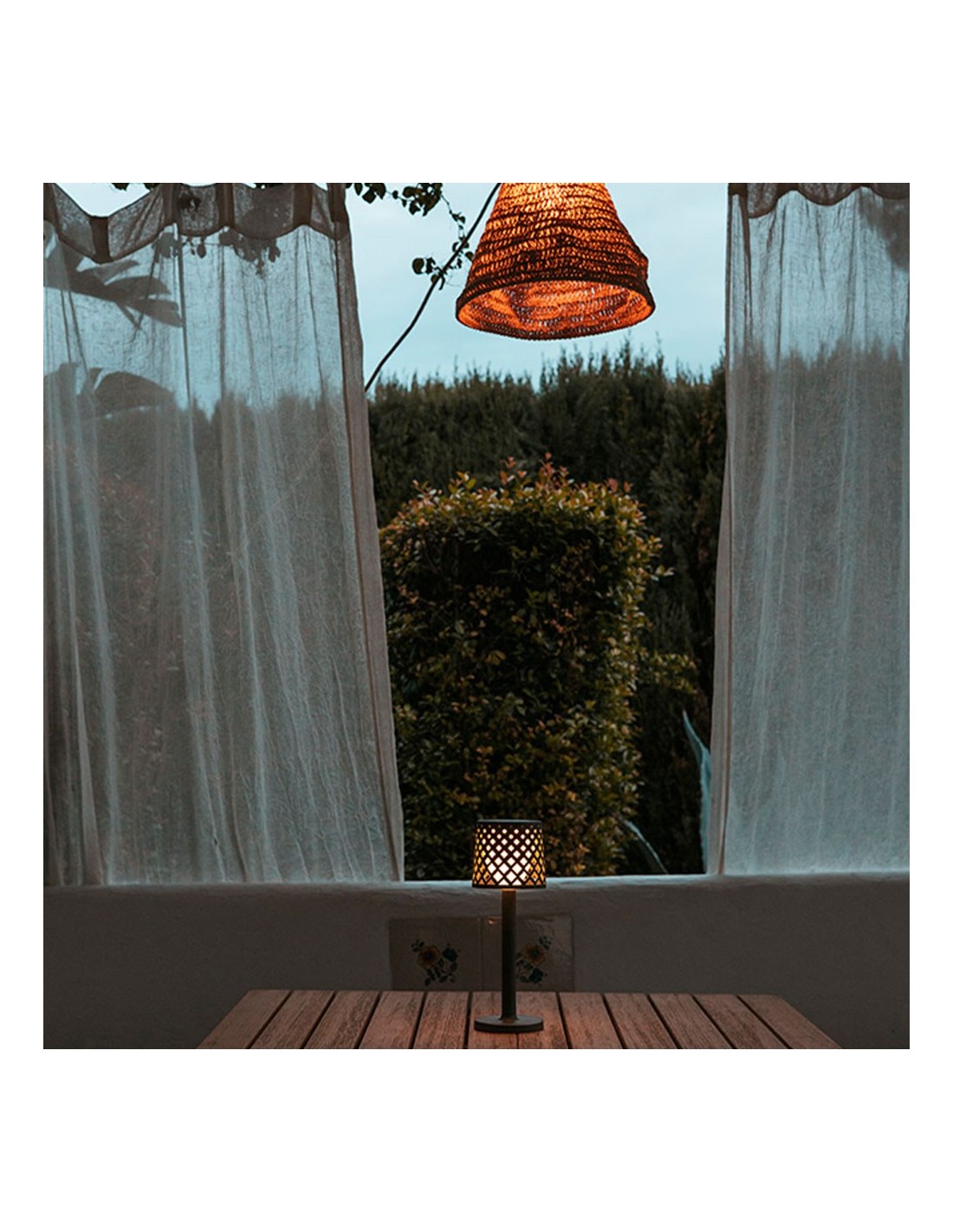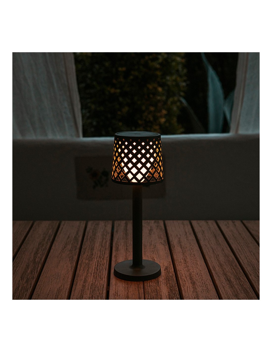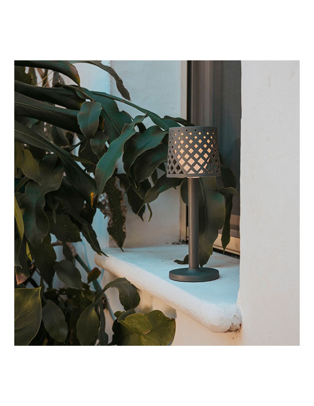 Lámpara de sobremesa con botón táctil, color antracita, modelo gretita, 80 lm, 3000 k, ip44 para exterior e interior. fabricada en plástico reciclado, intensidad de luz regulable, funciona con pilas 3 x aaa no incluidas, temperatura de trabajo entre 0 - 40°c, dimensiones ø11,7 x 31 cm
