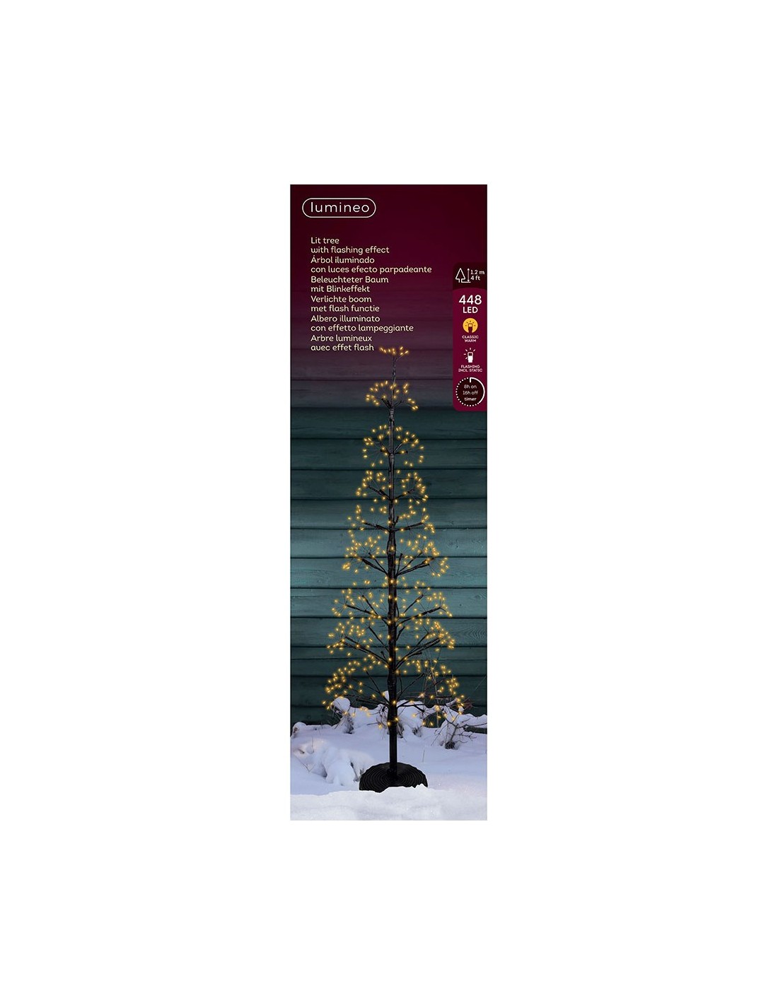Árbol micro led con función fija y parpadeante para uso exterior 1,2 m. temporizador: 8 h encendido / 16 h apagado. funciona con transformador 12v