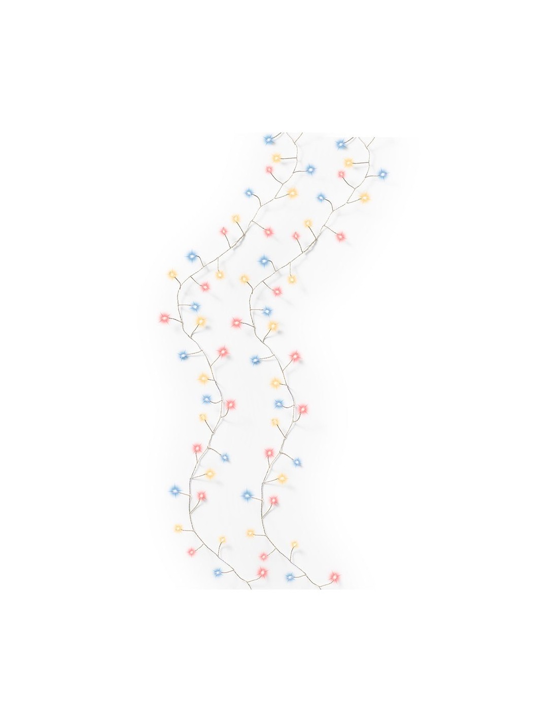 Guirnalda led exterior, blanca cálida y multicolor, parpadeante, cable plateado, 450 cm. temporizador: 8 h encendido / 16 h apagado. funciona con transformador 24v
