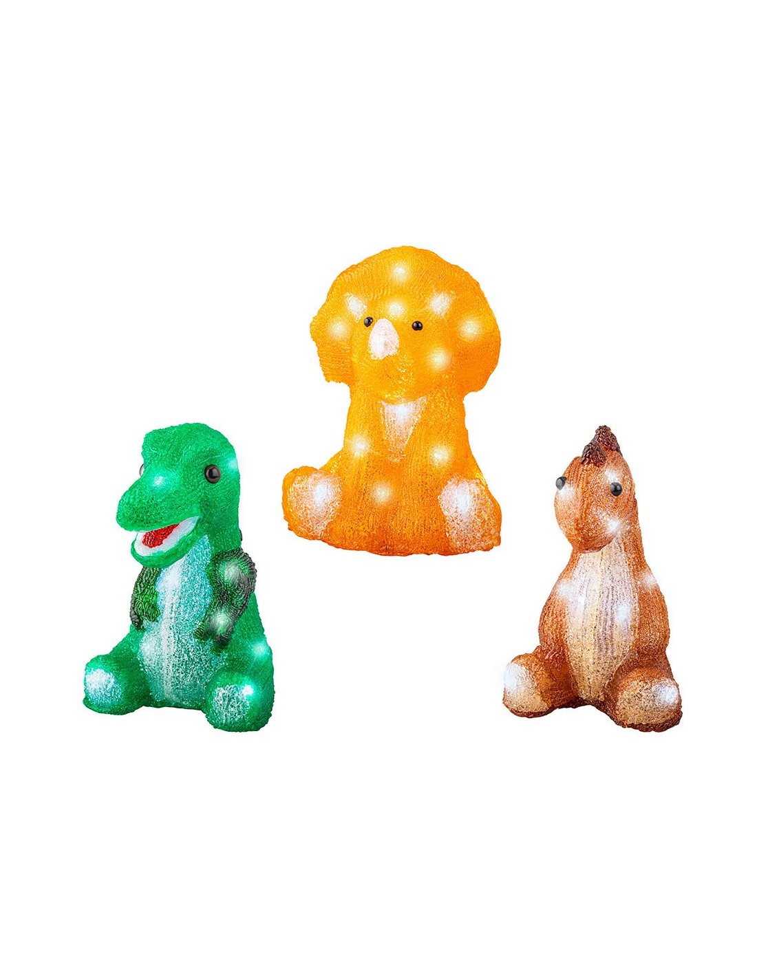 Figura dinosaurio led exterior con luz fija modelos variados. 20 leds. luz blanca fria. temporizador: 6 h encendido / 18 h apagado. funciona con pilas 3 x aa (no incluidas)