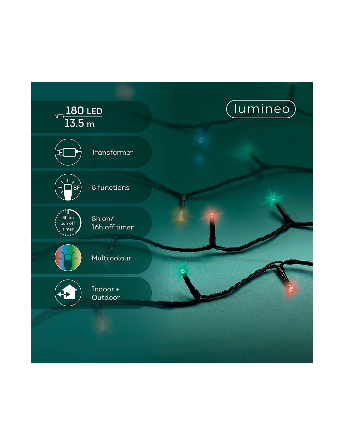 Guirnalda multifunción, uso exterior, basic, multicolor, cable negro, 180 leds, 13,5 m