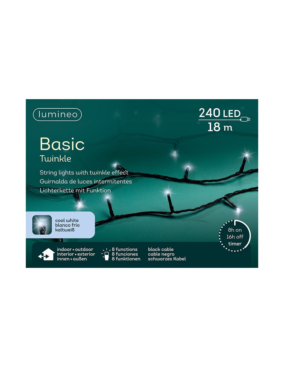 Guirnalda multifunción, uso exterior, basic, blanco frío, cable negro, 240 leds, 18 m