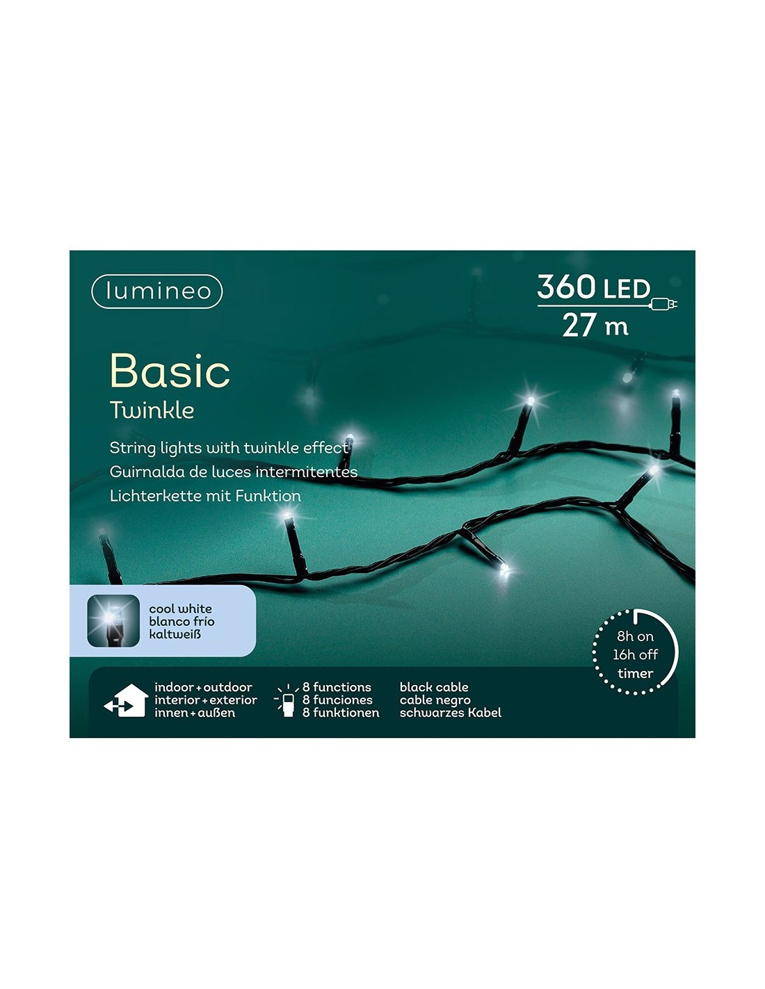 Guirnalda multifunción, uso exterior, basic, blanco frío, cable negro, 360 leds, 27 m