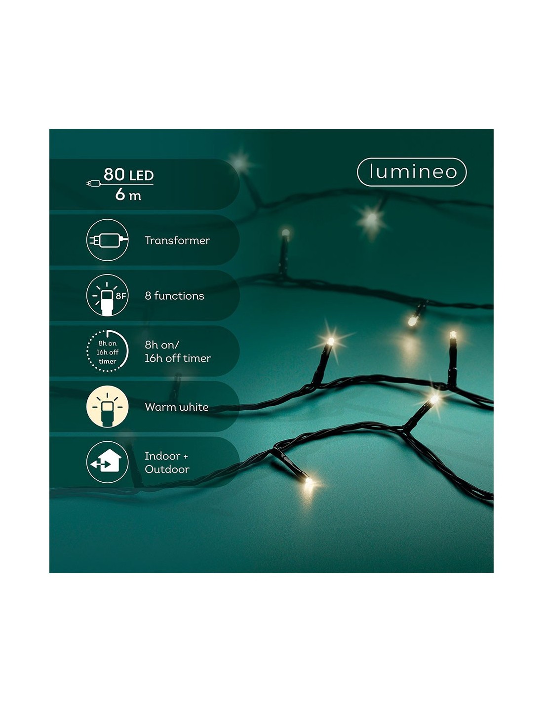 Guirnalda multifunción, uso exterior, basic, blanco cálido, cable negro, 80 leds, 6 m