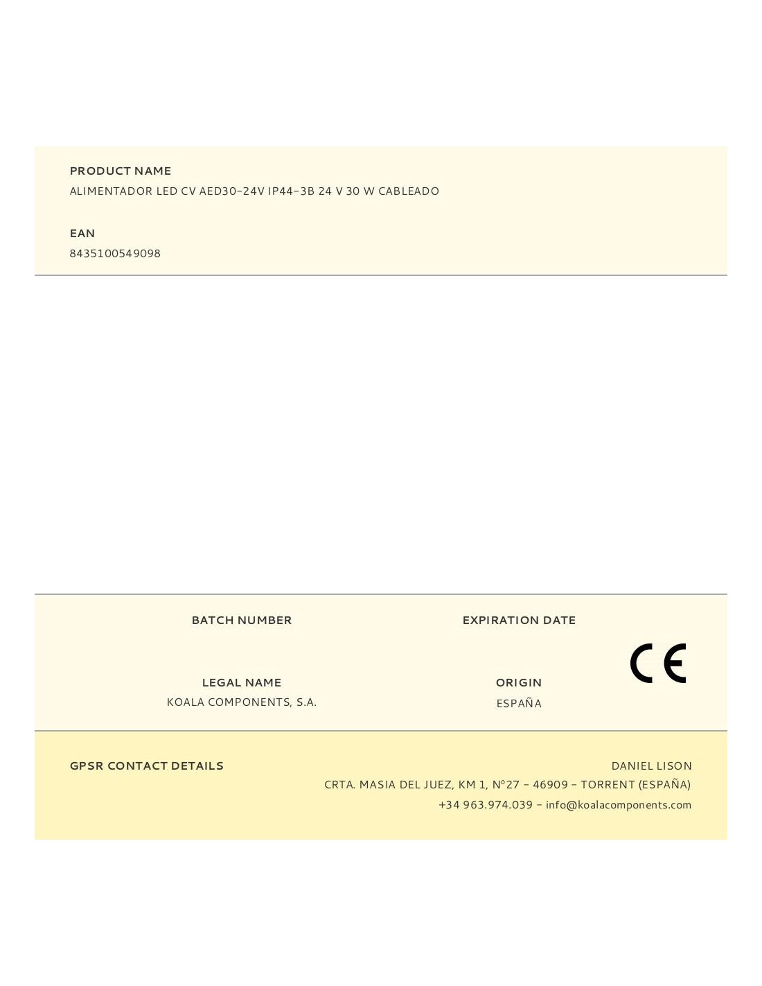 Alimentador led cv aed30-24v ip44-3b 24 v 30 w cableado