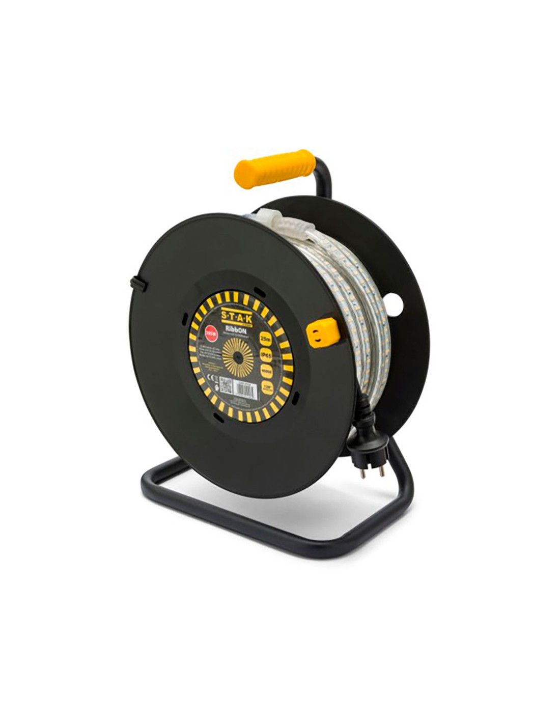 Tira de led ip65 25 m, 305 w, 4000 k luz día, en enrollador, se enciende automáticamente al desenrollarse, luz inmediata para obras, almacenes, jardines, stands, emergencias, etc. enrollador que facilita el transporte y almacenamiento tiene que desenrollarse completamente para el uso -10 a +40 °c, cable 1,5 m, smd led, flujo luminoso 32000 lm, 220 v - 240 v~50 hz vida estimada: 30000 h 28,5 x 20 x 36 cm