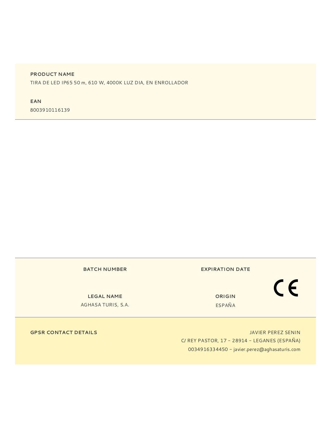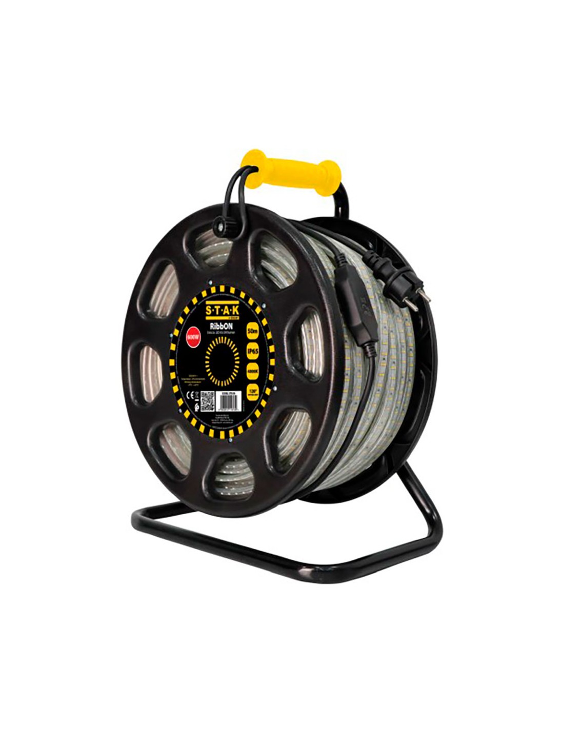 Tira de led ip65 50 m, 610 w, 4000 k luz día, en enrollador, se enciende automáticamente al desenrollarse, luz inmediata para obras, almacenes, jardines, stands, emergencias, etc. enrollador que facilita el transporte y almacenamiento tiene que desenrollarse completamente para el uso -10 a +40 °c, cable 1,5 m, smd led, flujo luminoso 65000 lm, 220 v - 240 v~50 hz vida estimada: 30000 h 25 x 35 x 42 cm