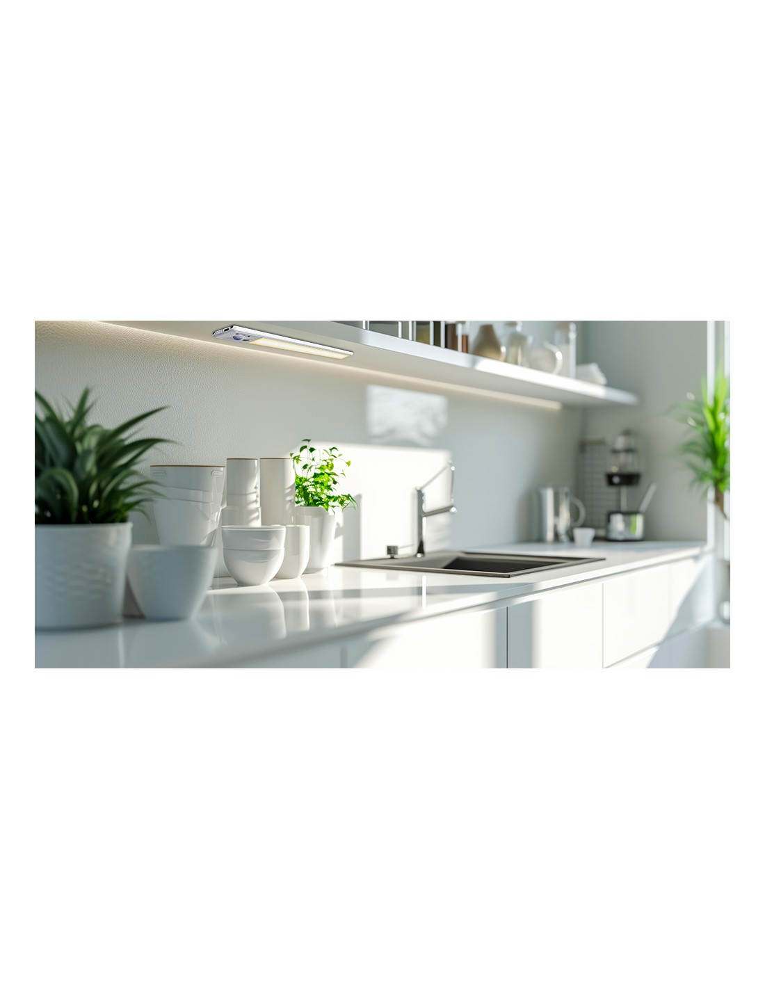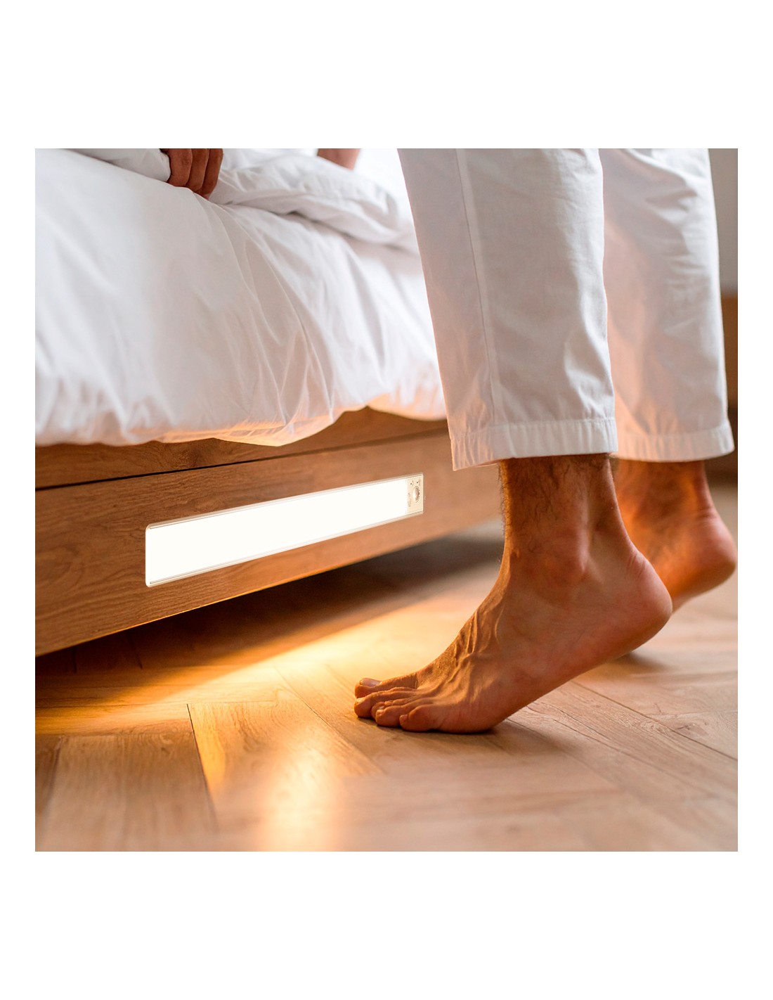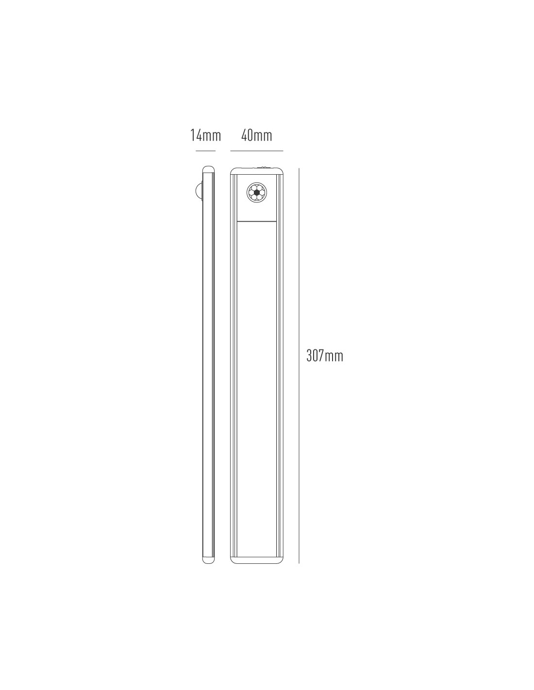 Regleta led recargable con sensor, 1,5 w, 3cct (3000k, 4000k, 6500k), 120 lm, 71 leds, flujo luminoso: 360°, ángulo de apertura: 180°, 1500 mah, carga con cable usb c 5v dc, tiempo de carga completa: 3 h, autonomía: 10 h, ip20, la intensidad de la luz es totalmente ajustable manteniendo pulsado el botón táctil, la temperatura de color es regulable con botón táctil, selector dip, sensor pir, vida estimada: 25000 h, incluye placa metálica adhesiva magnética no necesita instalación medida: 14 x 40 x 306 mm