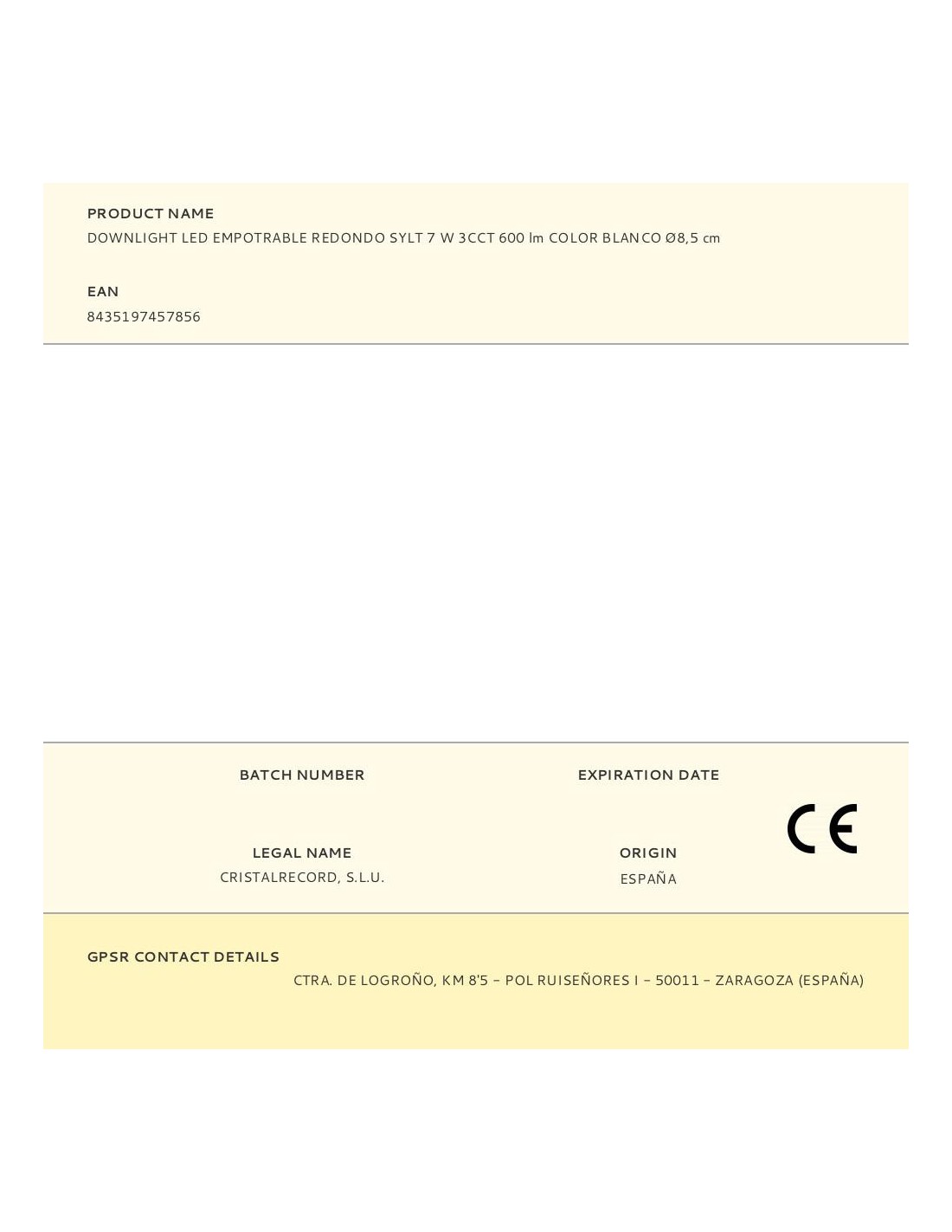 Downlight led, empotrable, redondo, sylt, 7 w, 3cct, 600 lm, color blanco, ø8,5 cm