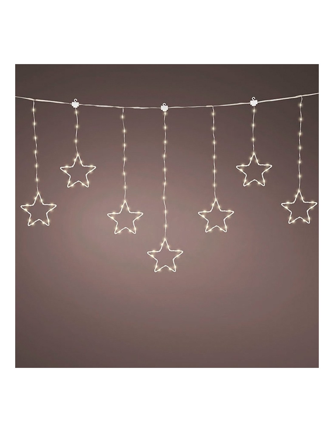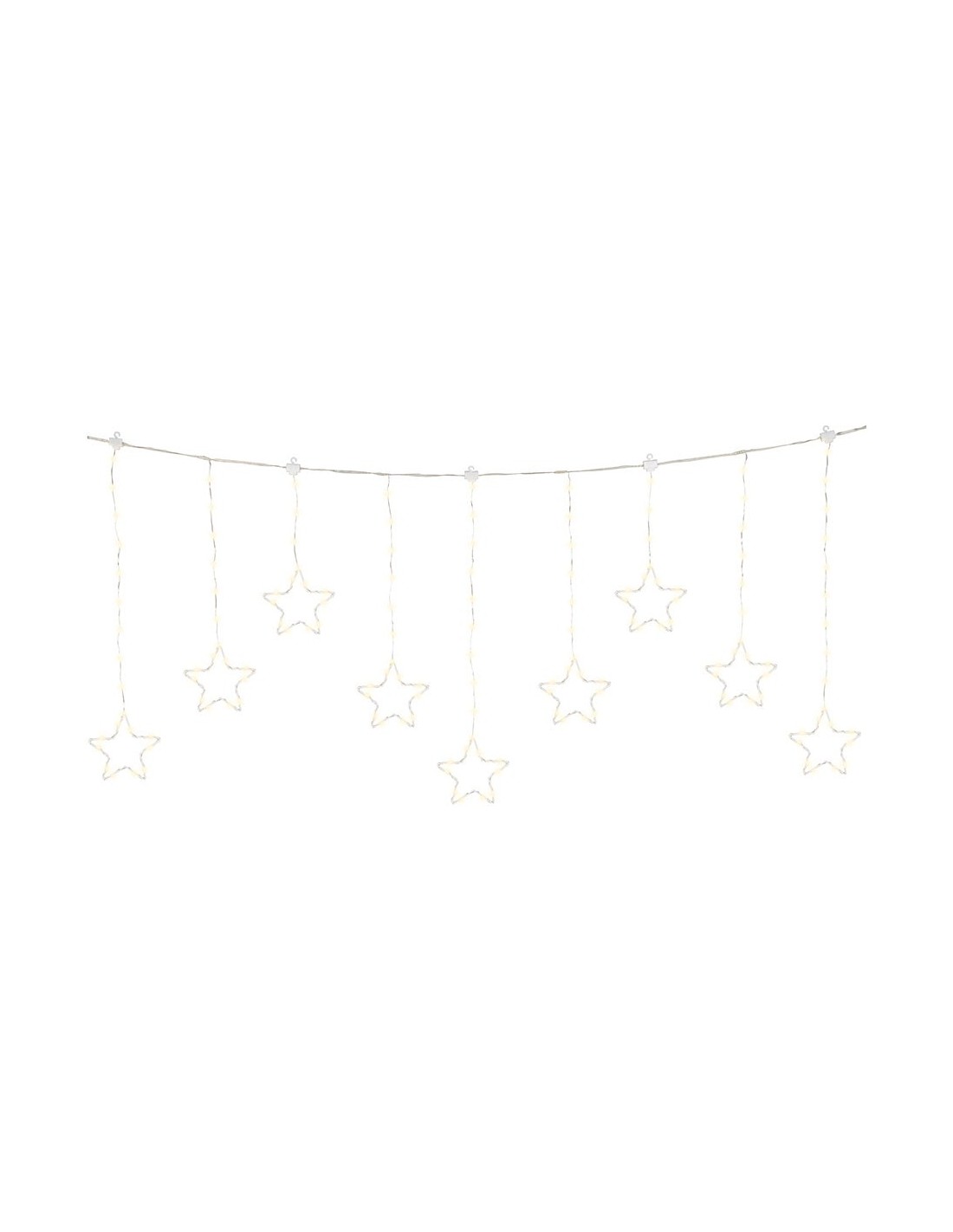 Cortina de luces led exterior con estrellas, fija, blanco cálido, cable transparente, 1,2 m. 240 leds. temporizador: 8 h encendido / 16 h apagado