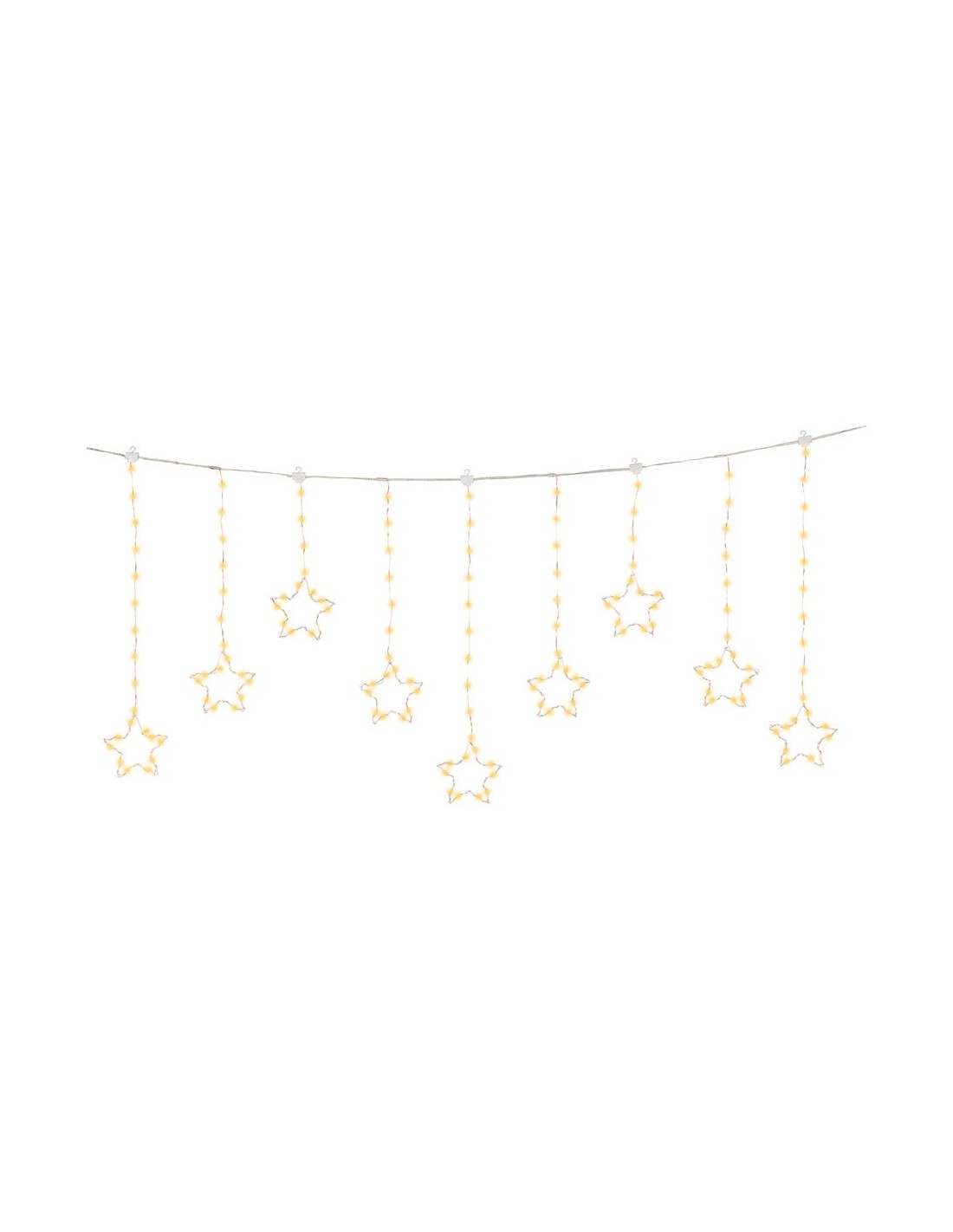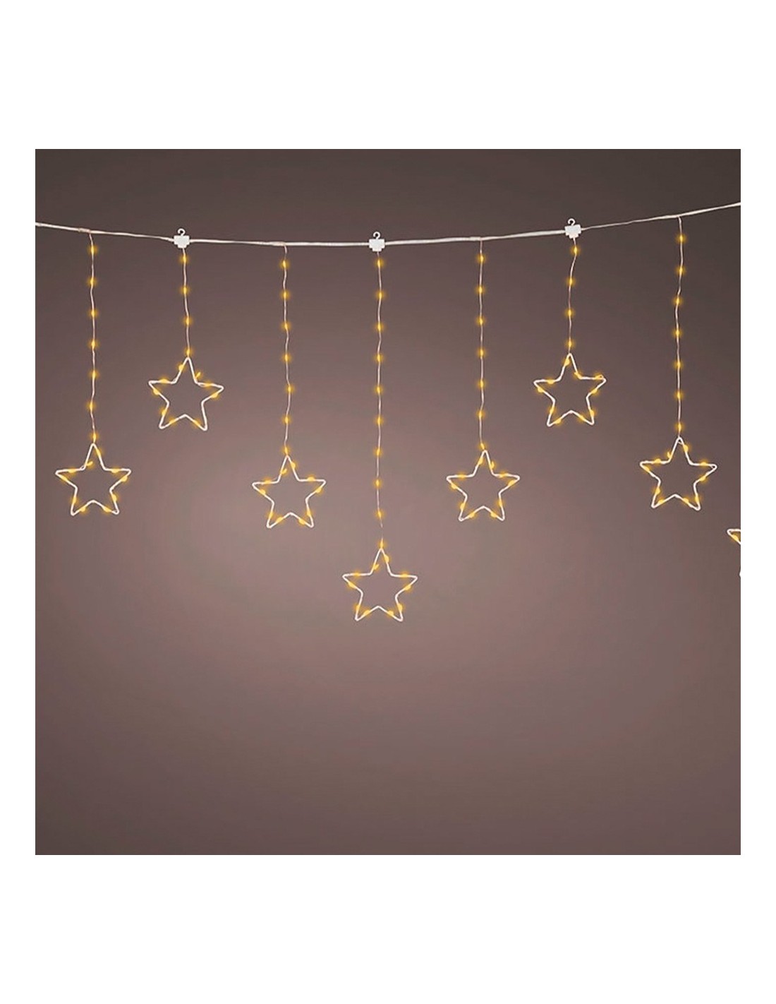 Cortina de luces led exterior con estrellas, 8 funciones, blanco cálido, cable plateado, 1,2 m. 156 leds. temporizador: 8 h encendido / 16 h apagado