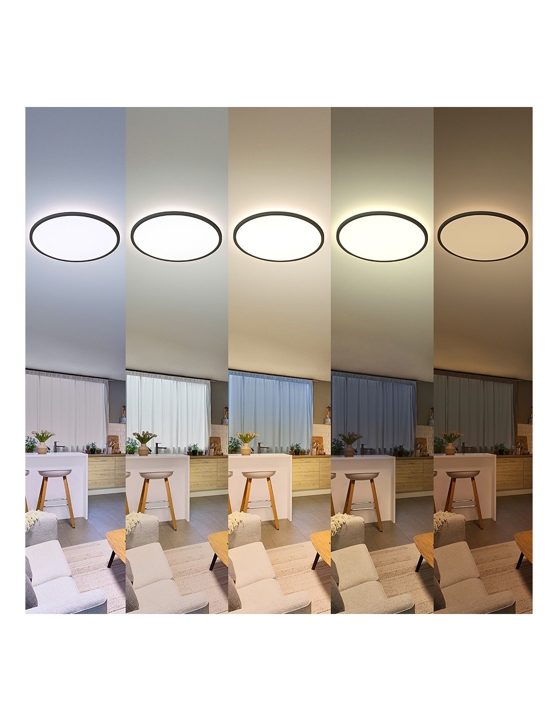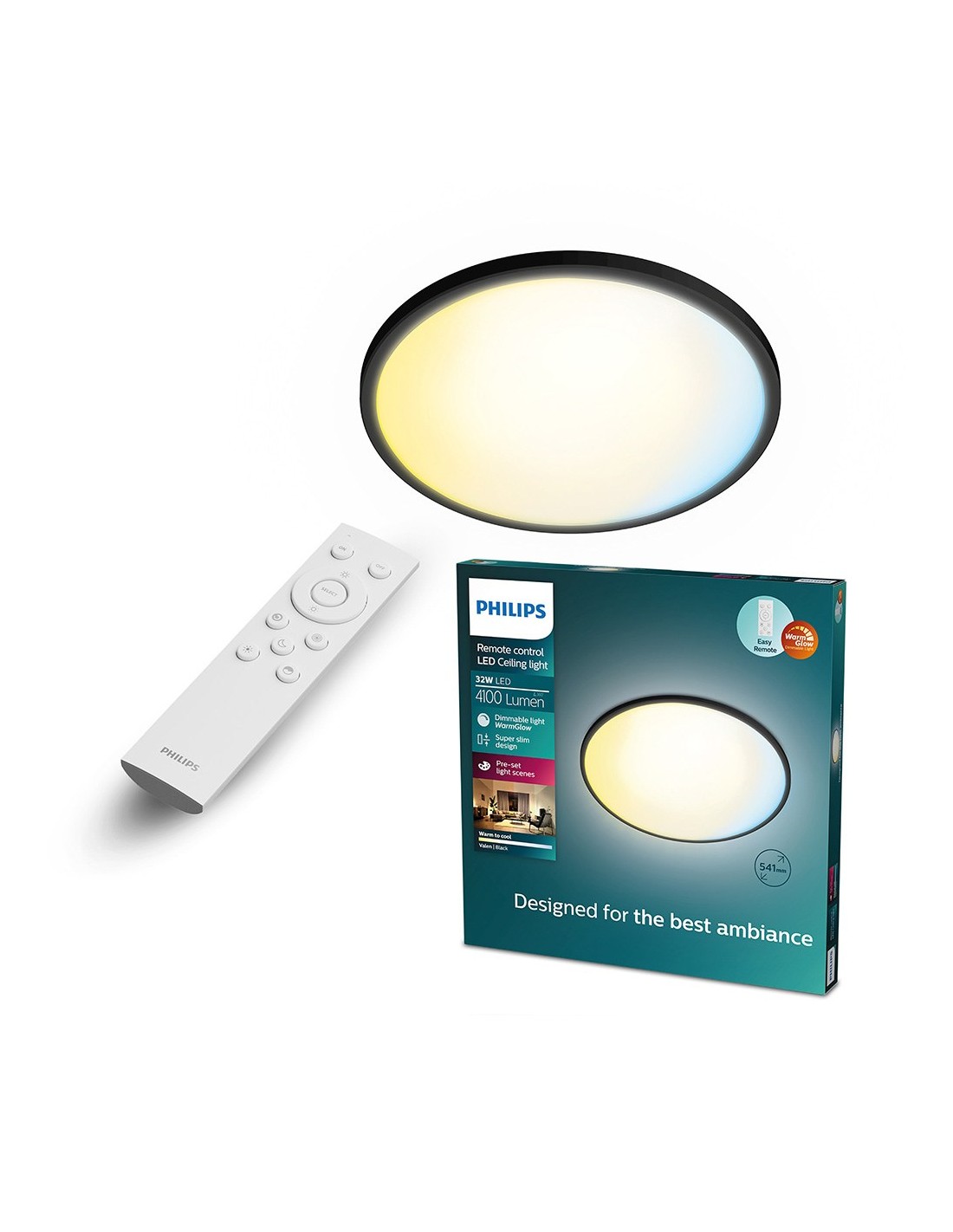Plafón redondo negro, modelo valen, 32 w, 4100 lm, tipo de flujo luminoso 360°, luz regulable 2200 - 6500 k, irc 80, eficacia lumínica 128 lm/w, led integrado. tensión 220 - 240 v ~50/60 hz, grado de protección ip20, diseño superdelgado, con escenas de luz predeterminadas, material plástico. incluye mando a distancia (pilas incluidas), vida estimada 20.000 h, incluye elementos de fijación, ø421 x 28 mm