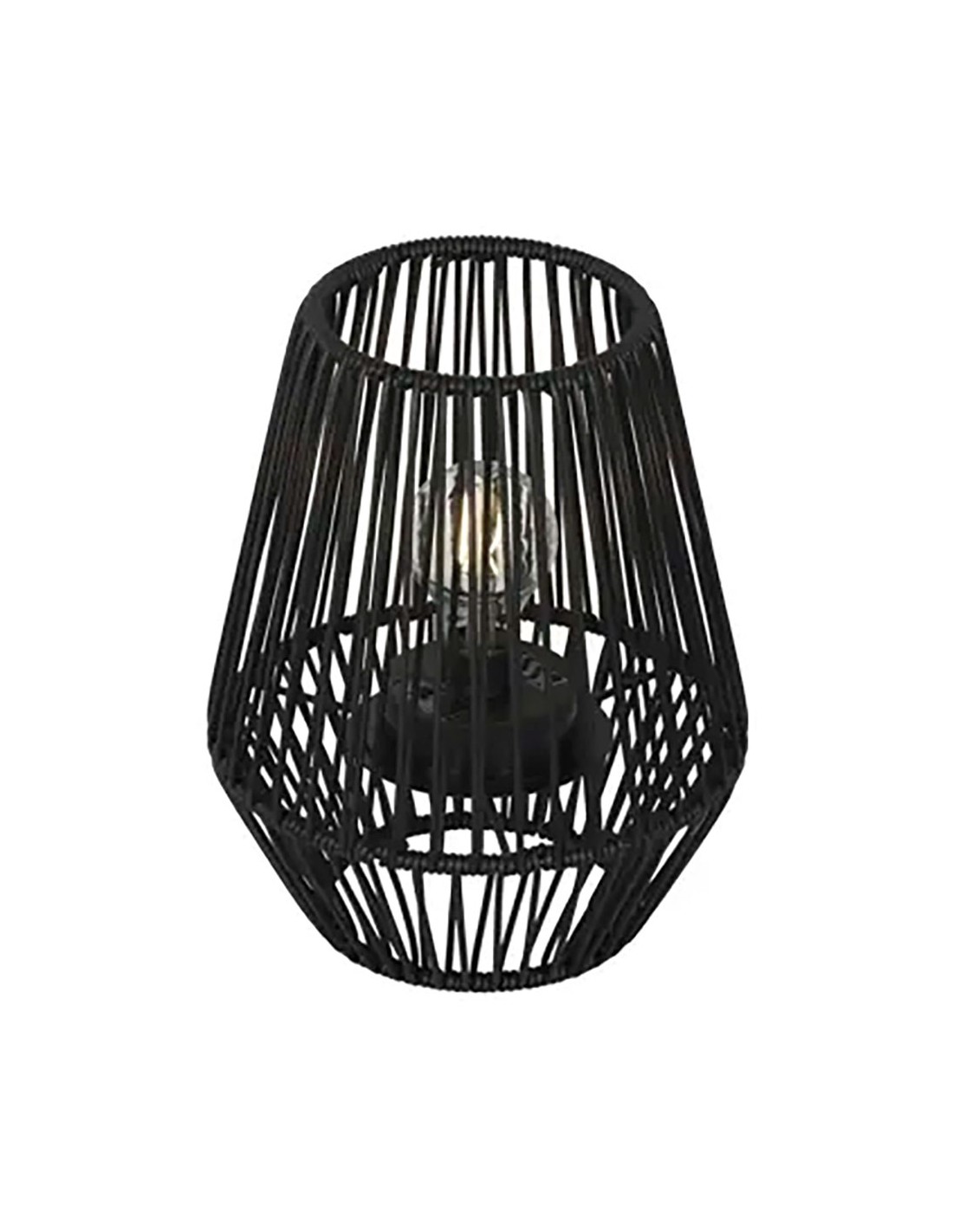 Farolillo solar negro, tipo de luz blanca cálida, 1 led. con panel solar 2v. 1 pila aa remplazable 1,5 v. 6 h de carga, 8 h de autonomía. con interruptor. material plástico, mimbre y metal. uso exterior. dimensiones 20 x 25 cm