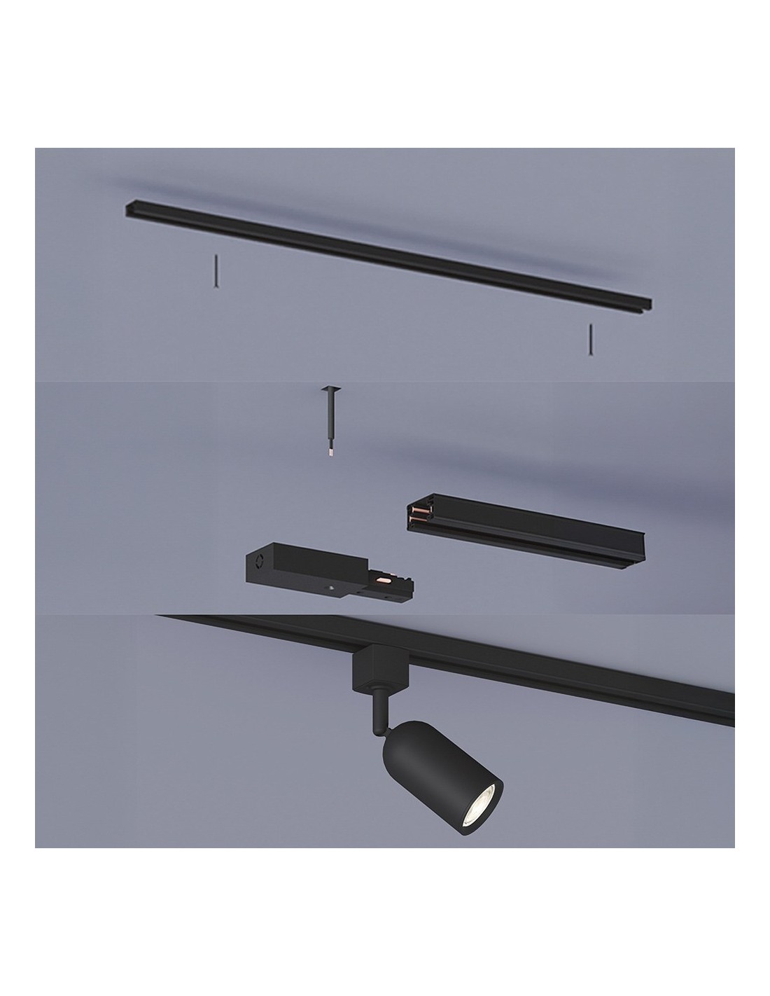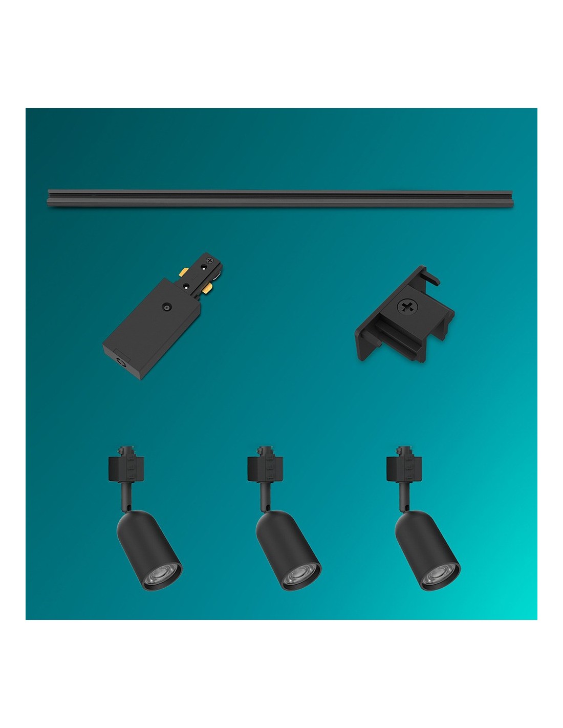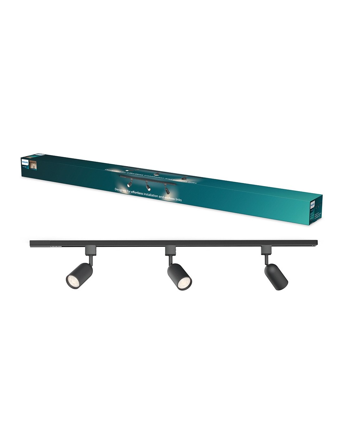 Sistema de riel eléctrico easylink con 3 focos shea x 5 w, color negro. 220-240 v~50/60 hz, casquillo gu10 (bombilla no incluida). incluye riel de 1 m, 3 focos shea, fuente de alimentación y 2 tapas finales. soporte máximo de 6 kg por metro. cabezal de foco ajustable. perfil de 17 mm. fabricado en aluminio de alta calidad. sistema de carril en h de 3 cables. compatible con bombillas led inteligentes y clásicas (opciones de regulación y temperatura de color según bombilla, disponibles por separado). totalmente compatible con el resto de componentes easylink. incluye elementos de fijación. dimensiones: 100 x 5,5 x 19 cm