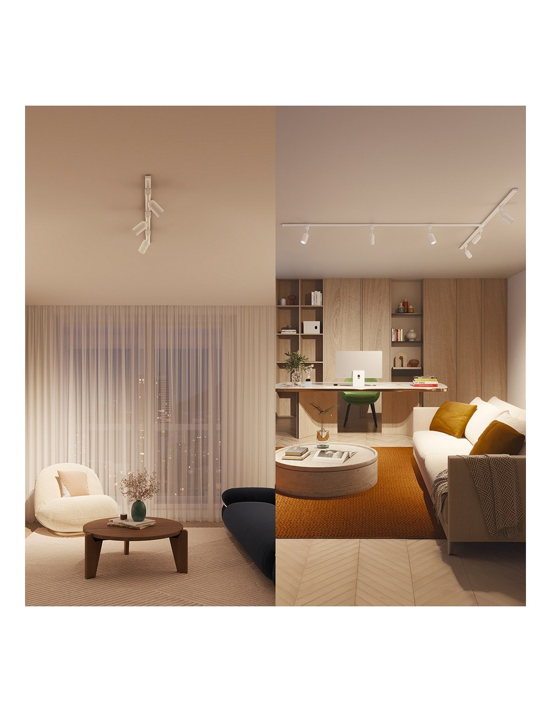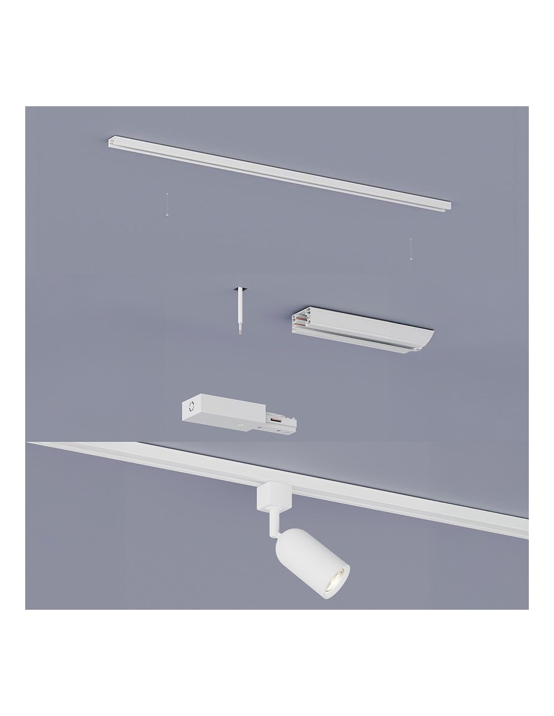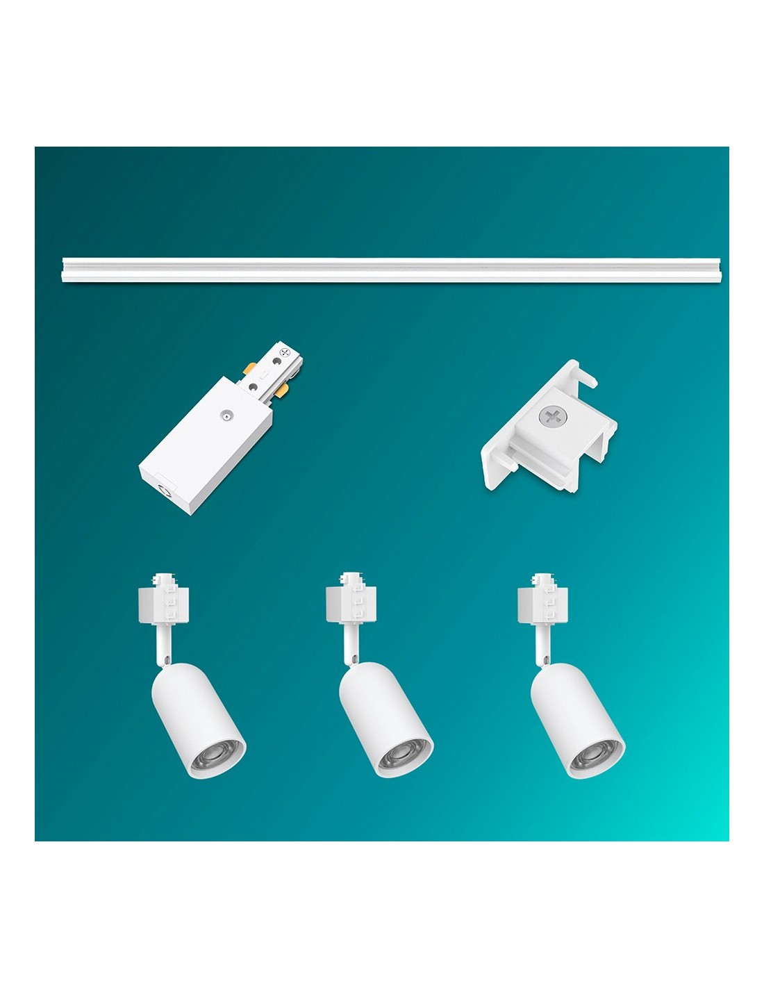 Sistema de riel eléctrico easylink con 3 focos shea x 5 w, color blanco. 220-240 v~50/60 hz, casquillo gu10 (bombilla no incluida). incluye riel de 1 m, 3 focos shea, fuente de alimentación y 2 tapas finales. soporte máximo de 6 kg por metro. cabezal de foco ajustable. perfil de 17 mm. fabricado en aluminio de alta calidad. sistema de carril en h de 3 cables. compatible con bombillas led inteligentes y clásicas (opciones de regulación y temperatura de color según bombilla, disponibles por separado). totalmente compatible con el resto de componentes easylink. incluye elementos de fijación. dimensiones: 100 x 5,5 x 19 cm
