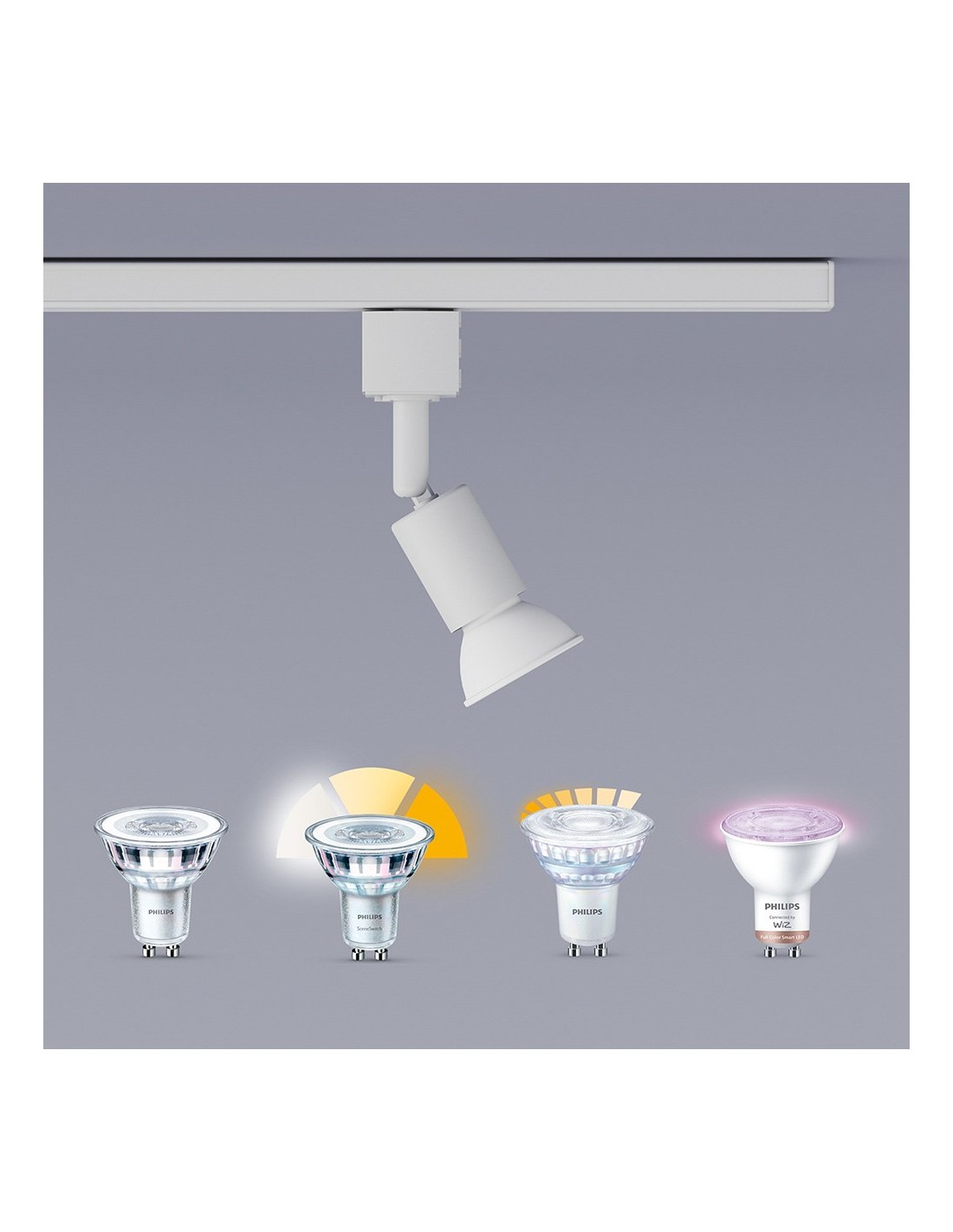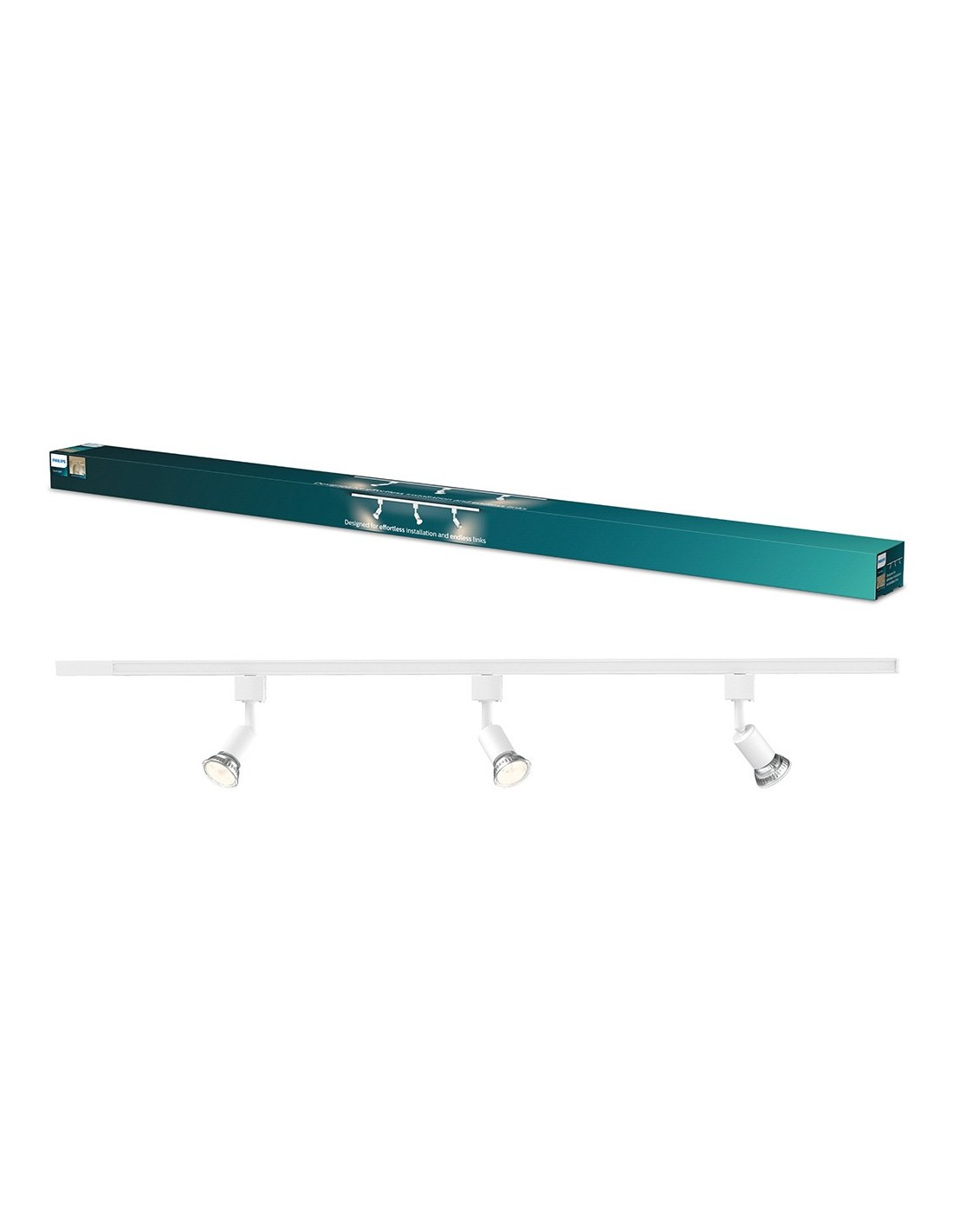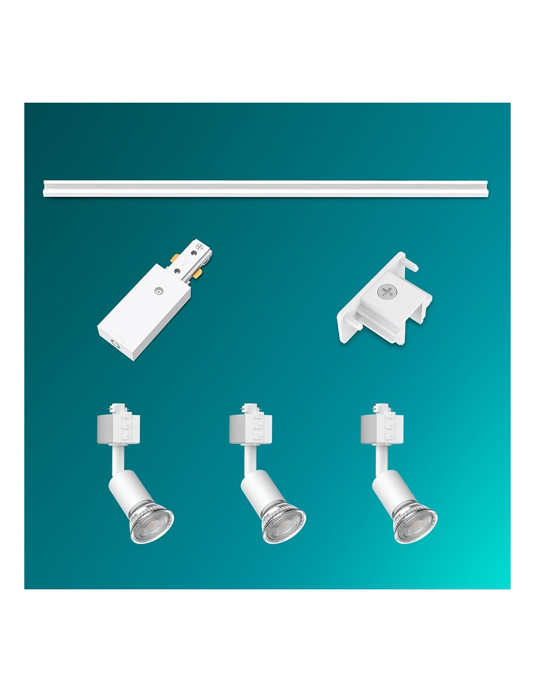 Sistema de riel eléctrico easylink 3 focos tobia x 5 w, color blanco. 220-240 v~50/60 hz, casquillo gu10 (bombilla no incluida), incluye un riel de 1 m, 3 focos tobia, fuente de alimentación y 2 tapas finales. soporte máximo de 6 kg por metro. cabezal de foco ajustable. perfil de 17 mm. fabricado en aluminio de alta calidad. sistema de carril en h de 3 cables. compatible con bombillas led inteligentes y clásicas (opciones de regulación y temperatura de color según bombilla, disponibles por separado). totalmente compatible con el resto de componentes easylink. incluye elementos de fijación. dimensiones: 100 x 3,8 x 13,3 cm