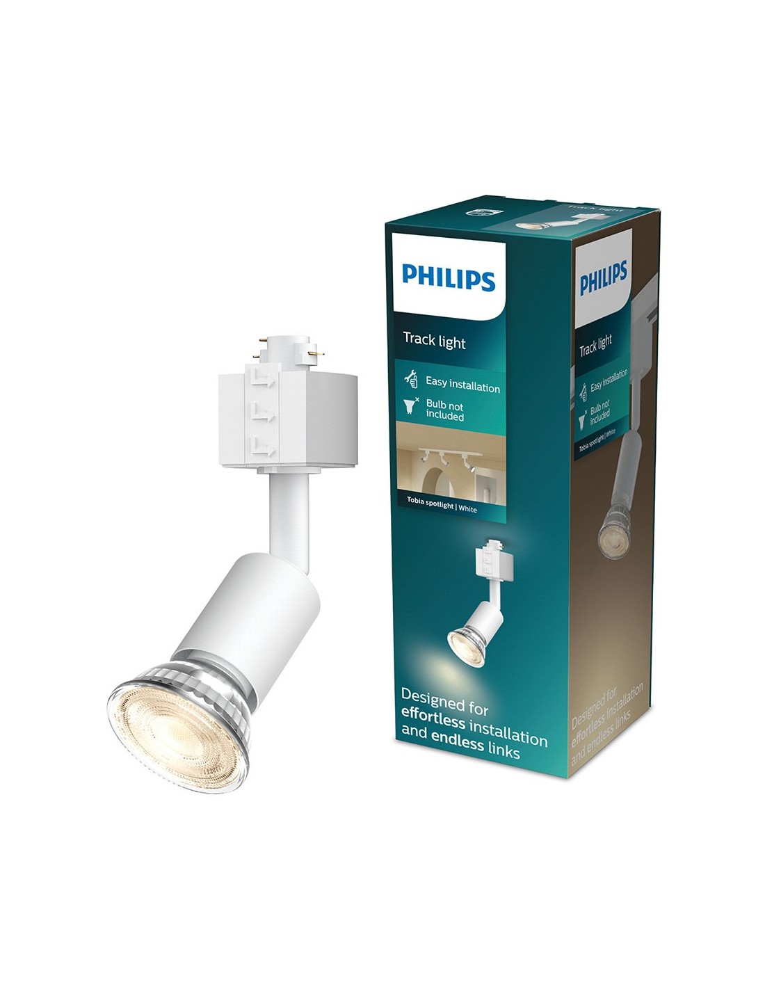 Foco easylink, modelo tobia, color blanco, máximo 5 w, casquillo gu10 (bombilla no incluida), cable de tierra integrado, cabezal orientable para dirigir la luz según la necesidad. fabricado en aluminio de alta calidad, compatible con riel philips easylink en h de 3 cables (se vende por separado), y con bombillas led inteligentes y clásicas (opciones de regulación y temperatura de color según bombilla, disponibles por separado). totalmente compatible con el resto de componentes easylink, 220 - 240 v ~50/60 hz, dimensiones ø35 × 128 mm