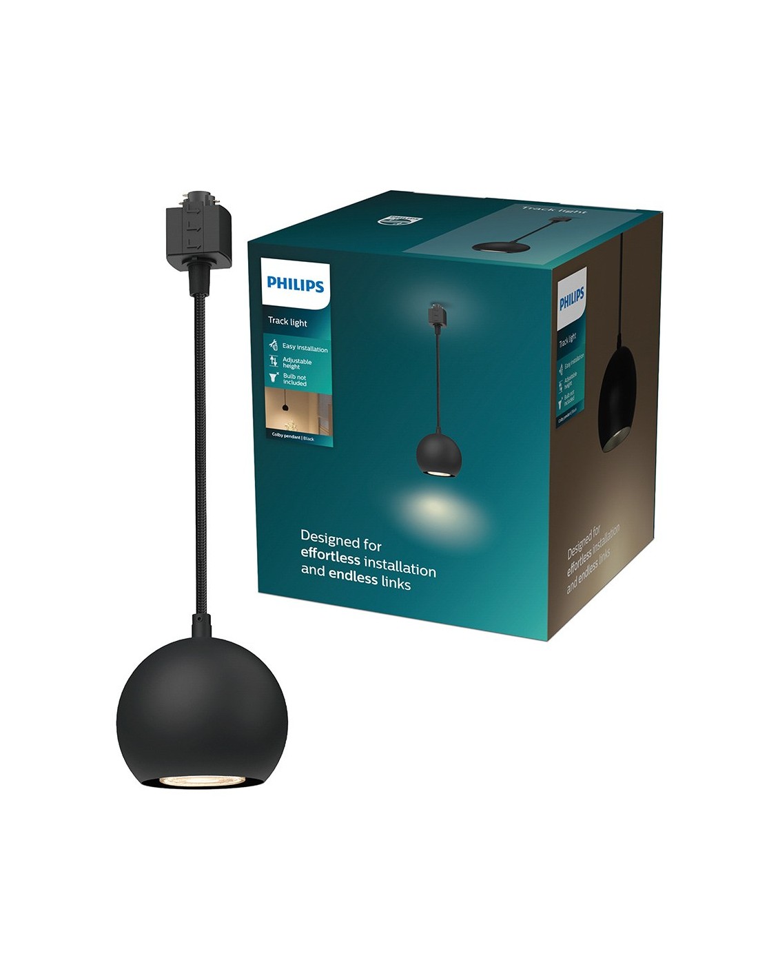 Lámpara easylink colby de techo, diseño colgante 7 w, negra. casquillo gu10 (bombilla no incluida), cable de tierra integrado, sistema de carril en h de 3 cables, compatible con bombillas led inteligentes y clásicas (opciones de regulación y temperatura de color según bombilla, disponibles por separado). totalmente compatible con el resto de componentes easylink. ø100 x 1360 mm
