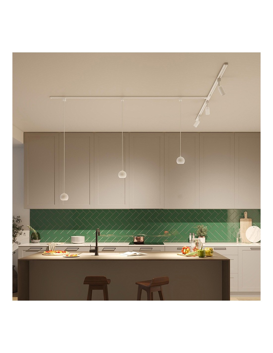 Lámpara easylink colby de techo, diseño colgante 7 w, blanca. casquillo gu10 (bombilla no incluida), cable de tierra integrado, sistema de carril en h de 3 cables, compatible con bombillas led inteligentes y clásicas (opciones de regulación y temperatura de color según bombilla, disponibles por separado). totalmente compatible con el resto de componentes easylink.. ø100 x 1360 mm