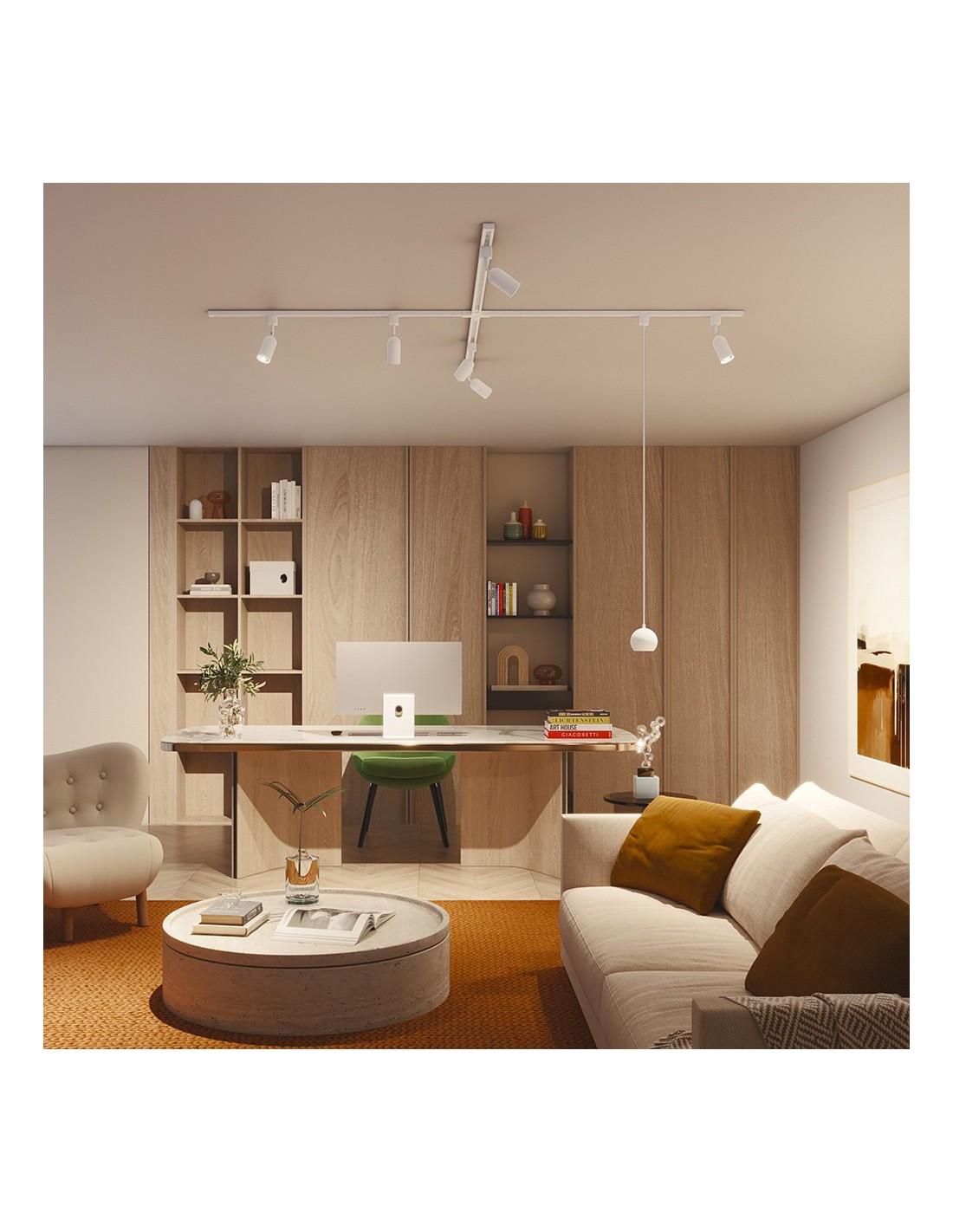 Riel de extensión easylink 1 m, color blanco. su función es ampliar un sistema existente, permitiendo colocar múltiples lámparas en un solo punto de conexión eléctrica. fabricado en aluminio de alta calidad. sistema de carril en h de 3 cables, máx. 1.800 w led, 220-240 v~50/60 hz. máximo 6 kg x 1 m. compatible con el resto de componentes easylink. incluye elementos de fijación. dimensiones: 100 x 3,3 x 1,7 cm