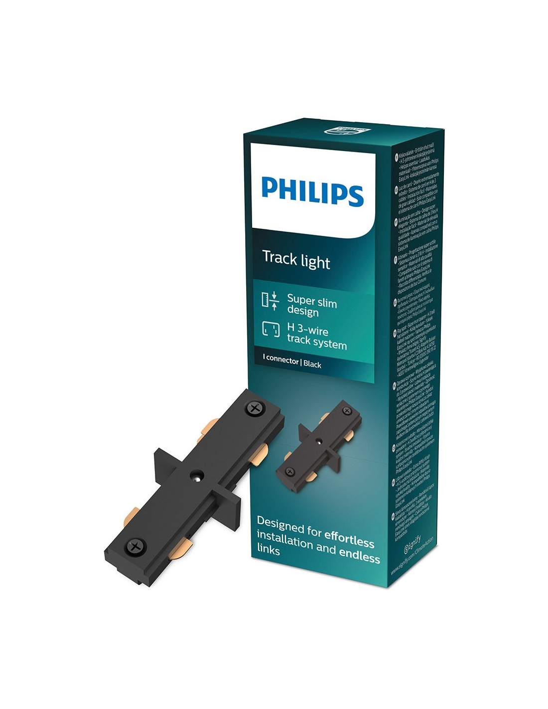 Conector recto easylink, negro. se utiliza para conectar 2 tramos de riel en línea recta, extendiendo su longitud total. compatible con el resto de componentes easylink, 1800 w max, 220-240 v, 50/60 hz, 3,4 x 1,7 x 8 cm