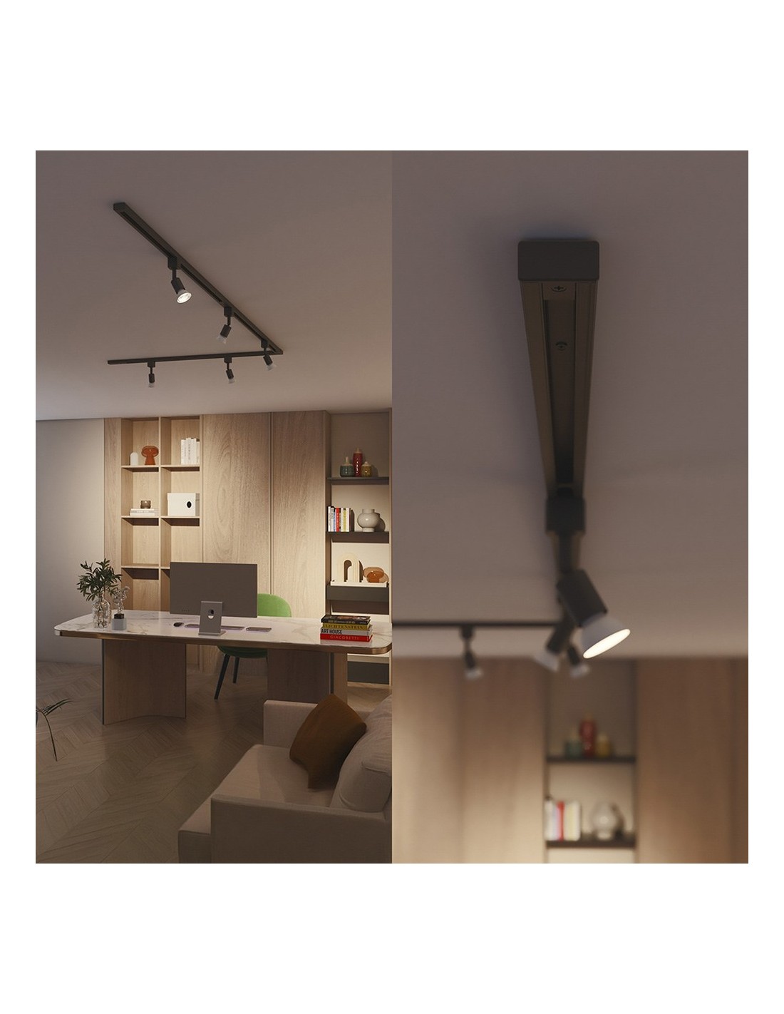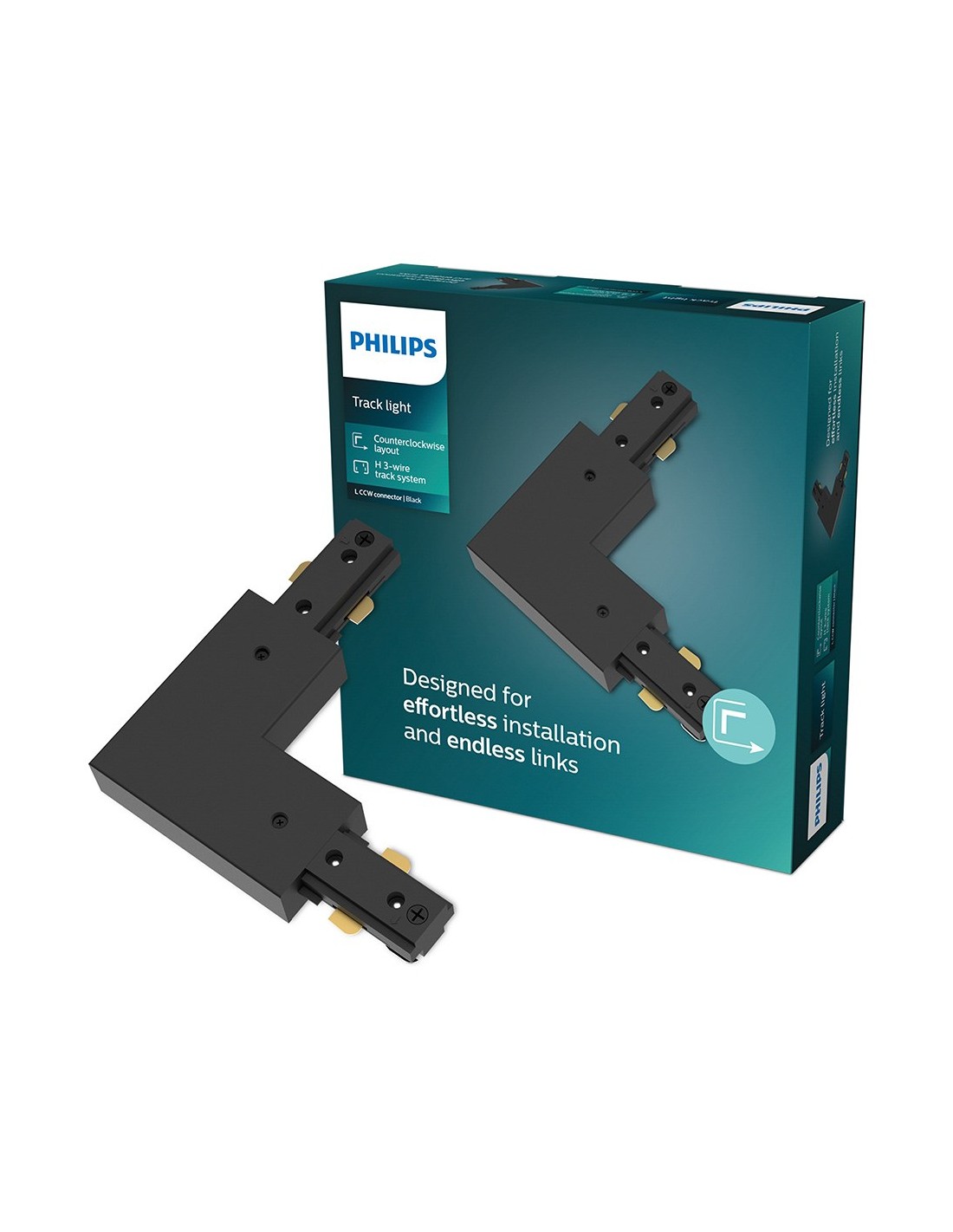 Conector en l en sentido antihorario easylink, negro, realiza giros de 90° en el sistema de iluminación, 1800 w máximo, 220 - 240 v ~50/60 hz, sistema de carril en h de 3 cables, compatible con el resto de componentes easylink. dimensiones 107 x 17 x 107 mm