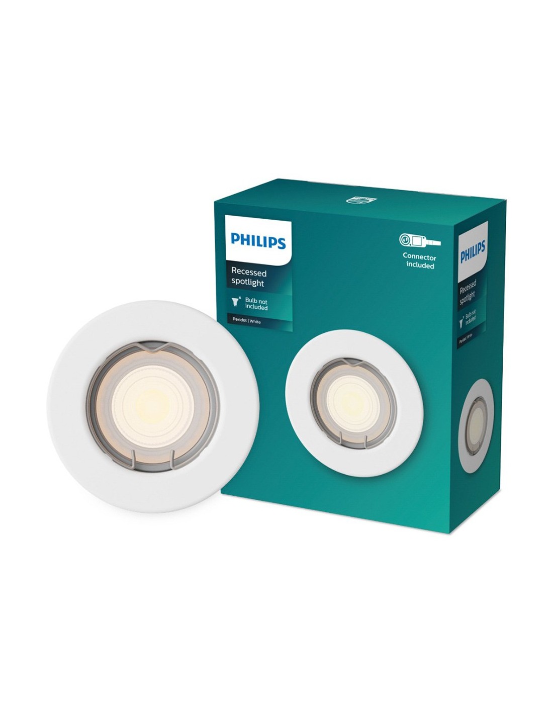 Foco empotrable redondo de metal, modelo peridot, fijo, color blanco. casquillo gu10 (bombilla no incluida), máx. 7 w, tensión: 220-240 v~50/60 hz. conector incluido. para uso interior ip20. vida estimada: 50.000 h. clase de protección ii. fabricado para led únicamente. ideal para cuarto de baño, comedor, cocina y salón. dimensiones: ø8,3 cm, enclavamiento: ø68 mm, profundidad: 31 mm