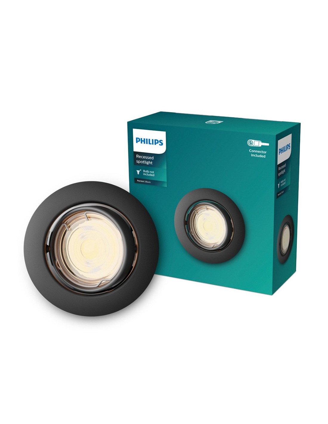Foco empotrable, redondo, de metal, modelo peridot, basculante, color negro, casquillo gu10 (bombilla no incluida), máx 7 w, tensión: 220 - 240 v ~ 50/60 hz. conector incluido. para uso interior ip20. vida estimada: 50.000 h. clase de protección ii. fabricado para led únicamente. ideal para cuarto de baño, comedor, cocina y salón. dimensiones: ø9 cm, enclavamiento: ø68 mm, profundidad: 27 mm