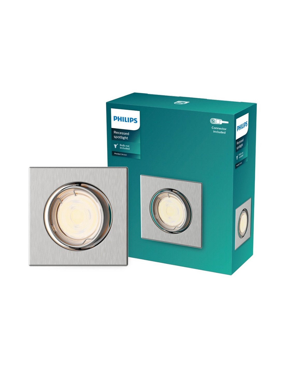 Foco empotrable, cuadrado, de metal, modelo peridot, basculante, color níquel, casquillo gu10 (bombilla no incluida), máx 7 w, tensión: 220 - 240 v ~ 50/60 hz. conector incluido. para uso interior ip20. vida estimada: 50.000 h. clase de protección ii. fabricado para led únicamente. ideal para cuarto de baño, comedor, cocina y salón. dimensiones: 9 x 9 cm, enclavamiento: ø68 mm, profundidad: 26 mm