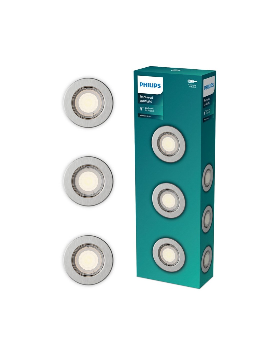 Foco empotrable redondo de metal, modelo peridot, fijo, color níquel. casquillo gu10 (bombillas no incluidas), máx. 7 w, tensión: 220-240 v~50/60 hz. conector incluido. para uso interior ip20. vida estimada: 50.000 h. clase de protección ii. fabricado para led únicamente. ideal para cuarto de baño, comedor, cocina y salón. dimensiones: ø8,3 cm, enclavamiento: ø68 mm, profundidad: 31 mm, 3 uds