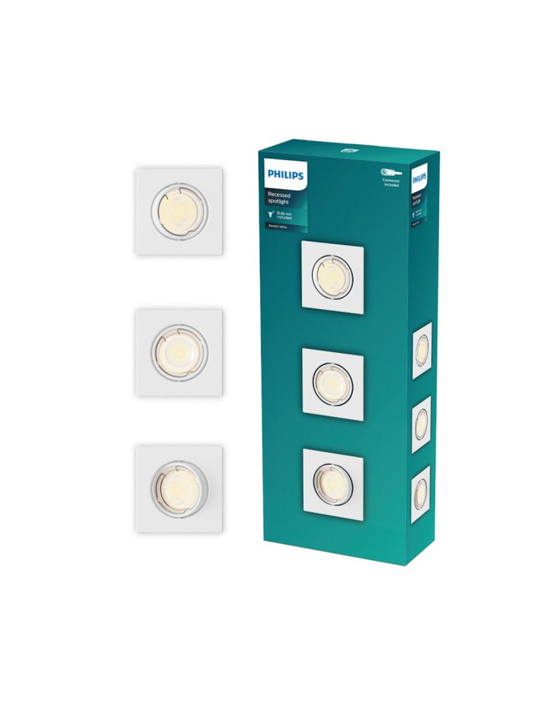 Foco empotrable, cuadrado, de metal, modelo peridot, basculante, color blanco, casquillo gu10 (bombilla no incluida), máx 7 w, tensión: 220 - 240 v ~ 50/60 hz. conector incluido. para uso interior ip20. vida estimada: 50.000 h. clase de protección ii. fabricado para led únicamente. ideal para cuarto de baño, comedor, cocina y salón. dimensiones: 9 x 9 cm, enclavamiento: ø68 mm, profundidad: 26 mm, 3 uds