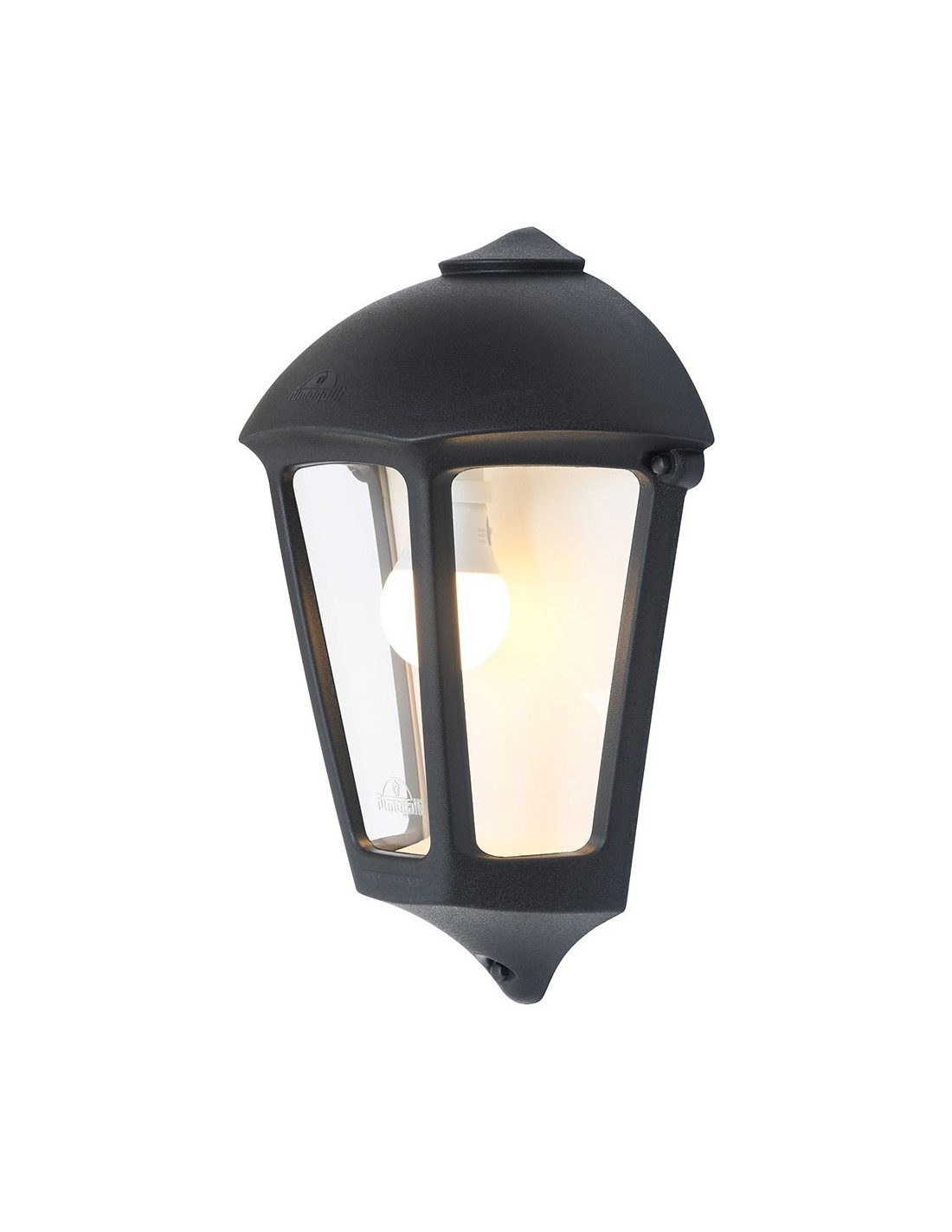 Farol de pared, modelo giulio, color negro con cristal transparente, tensión 220 - 240 v ~50/60 hz, casquillo e27, máximo 23 w, longitud máxima bombilla 160 mm, bombilla no incluida, grado de protección ip55, hecho de resina resistente uv, anticorrosión y antióxido. incluye elementos de fijación. 265 x 135 x 375 mm