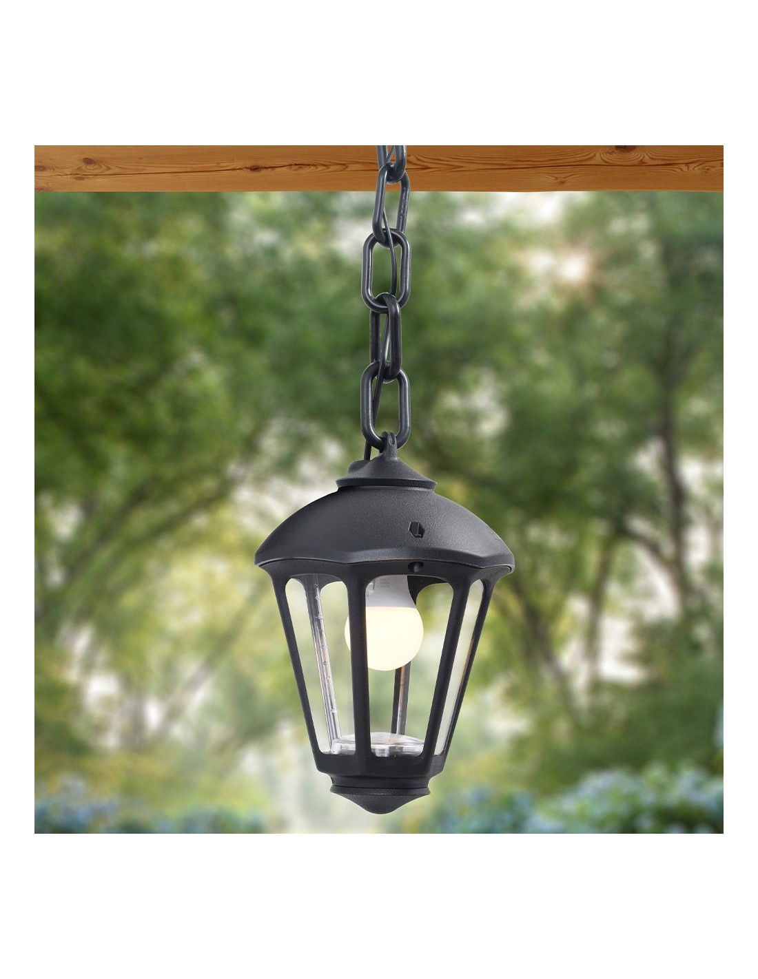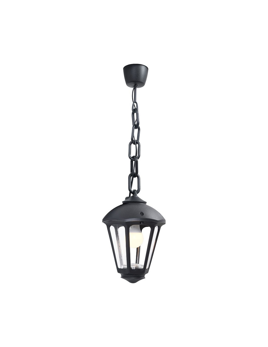 Farol de techo con cadena, modelo sicar/giampy, color negro con cristal transparente, tensión 220 - 240 v ~50/60 hz, casquillo e27, máximo 23 w, longitud máxima bombilla 130 mm, bombilla no incluida, grado de protección ip55, hecho de resina resistente uv, anticorrosión y antióxido. ø210 x 750 mm
